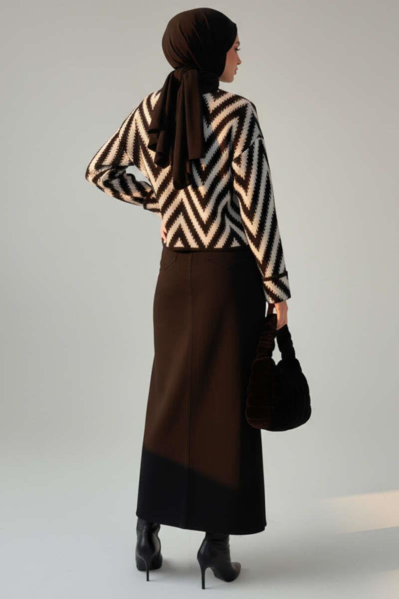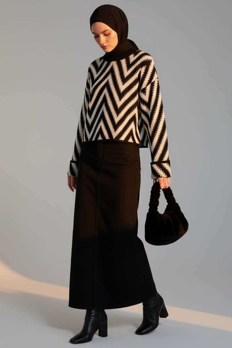 Zigzag Pattern Openwork Knitwear Sweater Black (0537-6767-679575)