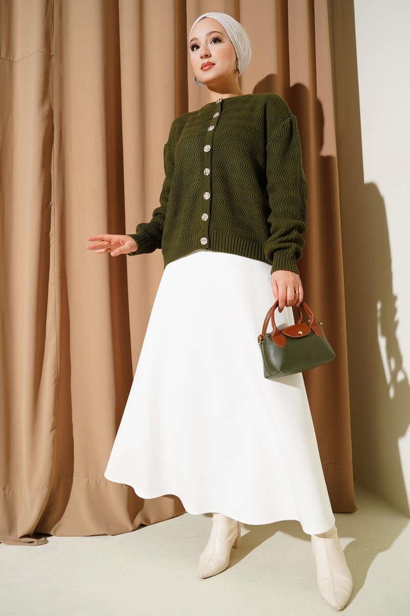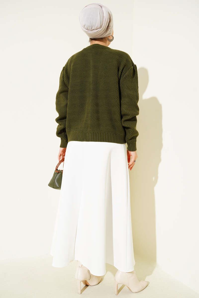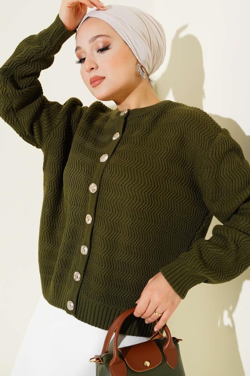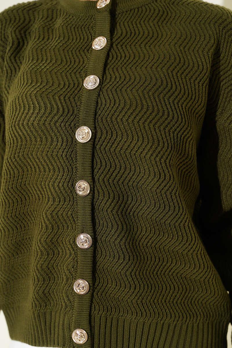 Zigzag Patterned Gold Buttoned Knit Cardigan Khaki (0875-4219-672578)