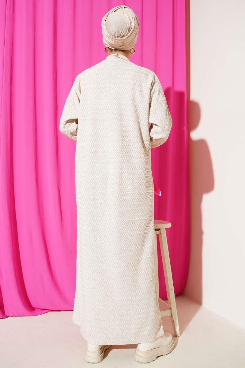 Zigzag Patterned Long Knit Cardigan Beige (8374-9762-669529)