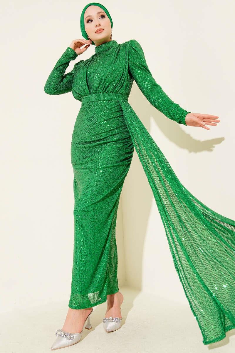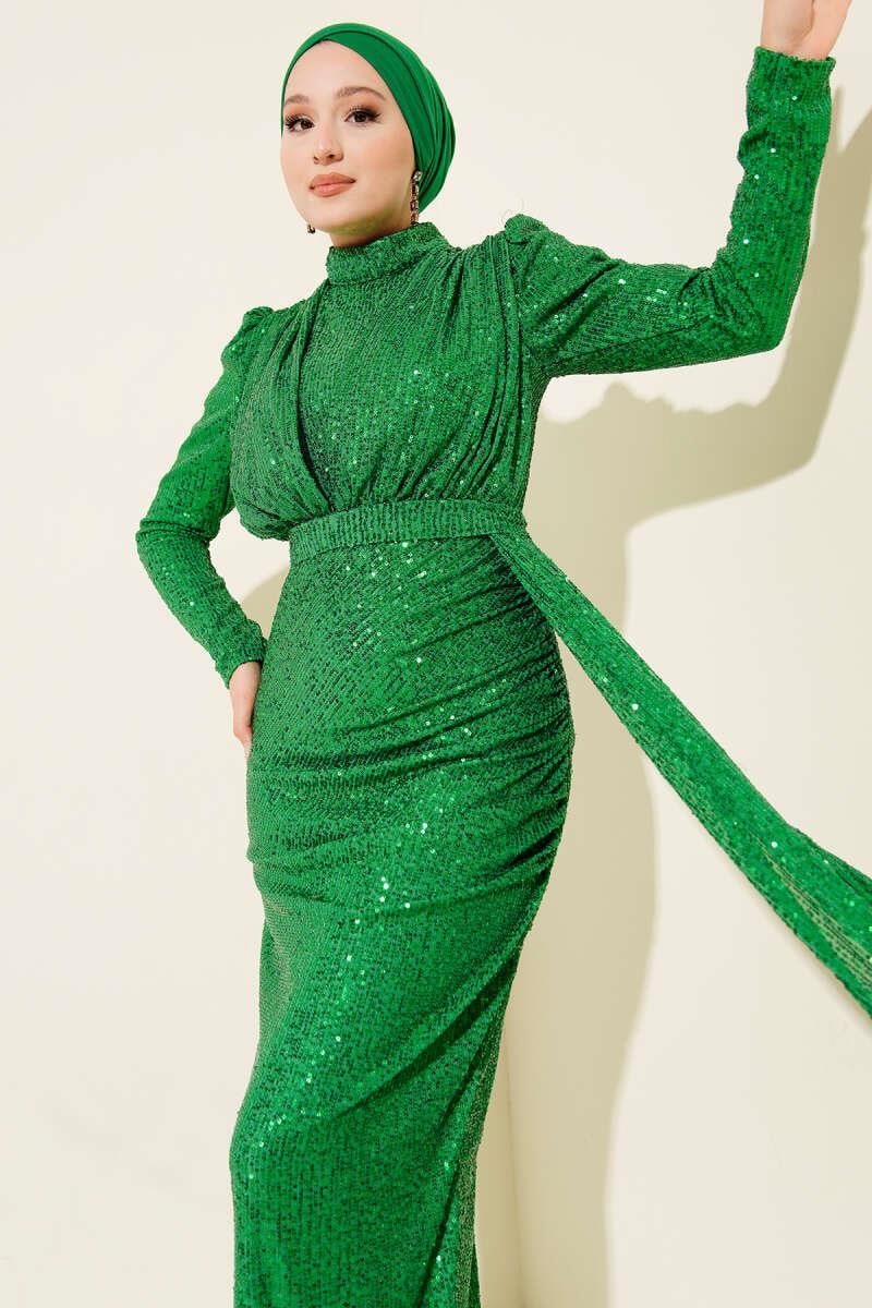 Zippered Sequined Belted Evening Dress Benetton (8163-4426-668807)