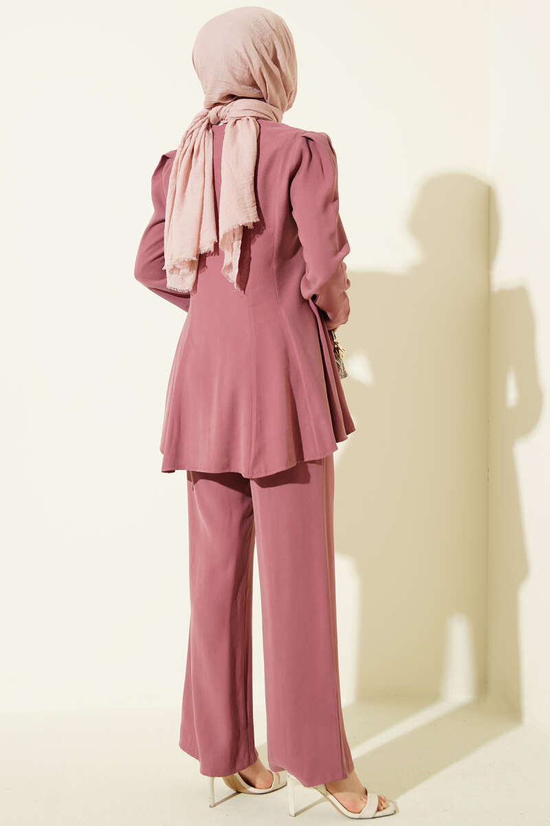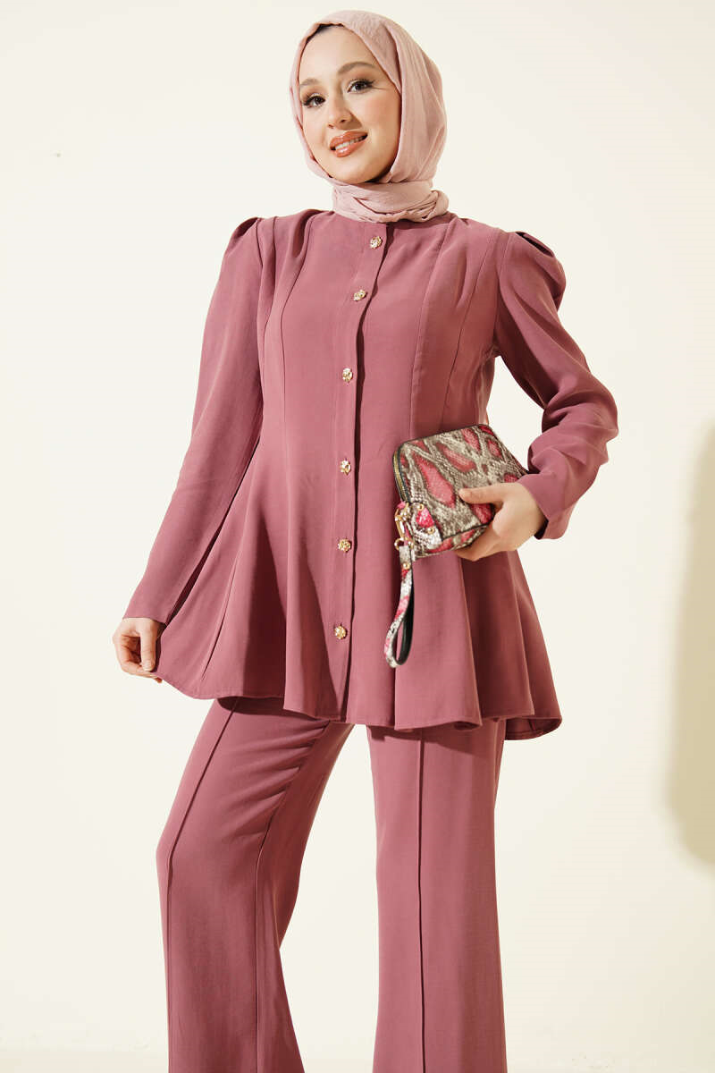 Gold Buttoned Basic Tencel 2 Piece Set, Rose Pink (0999-6697-722391)