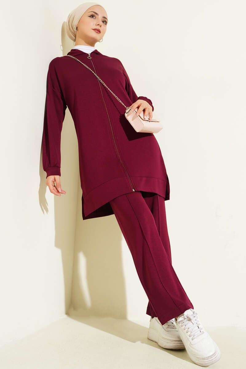 Loyşa Basic Hooded 2 Piece Set Claret Red (0319-2211-685434)
