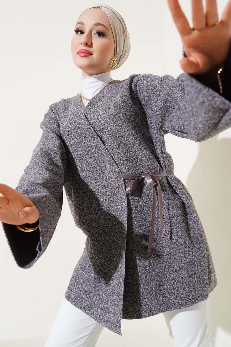 Ribbon Front Boucle Jacket Smoke (0582-12961-592503)