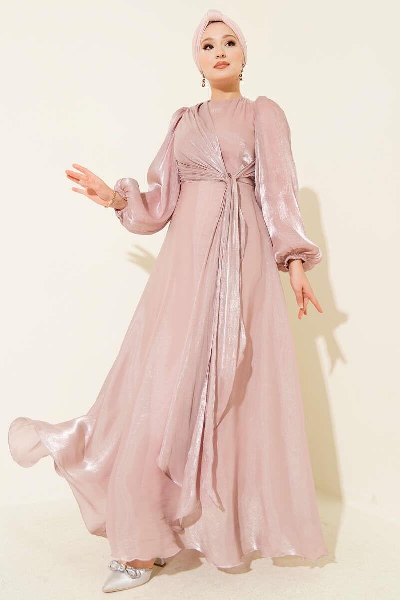 Chiffon Side Tie Evening Dress Dusty Rose (8163-4439-679356)