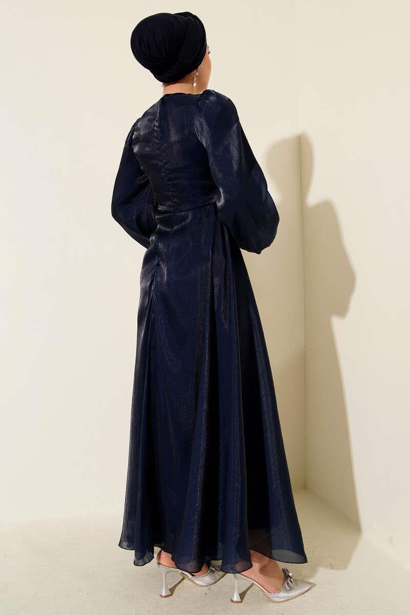 Chiffon Side Tie Evening Dress Navy Blue (8163-4439-679370)