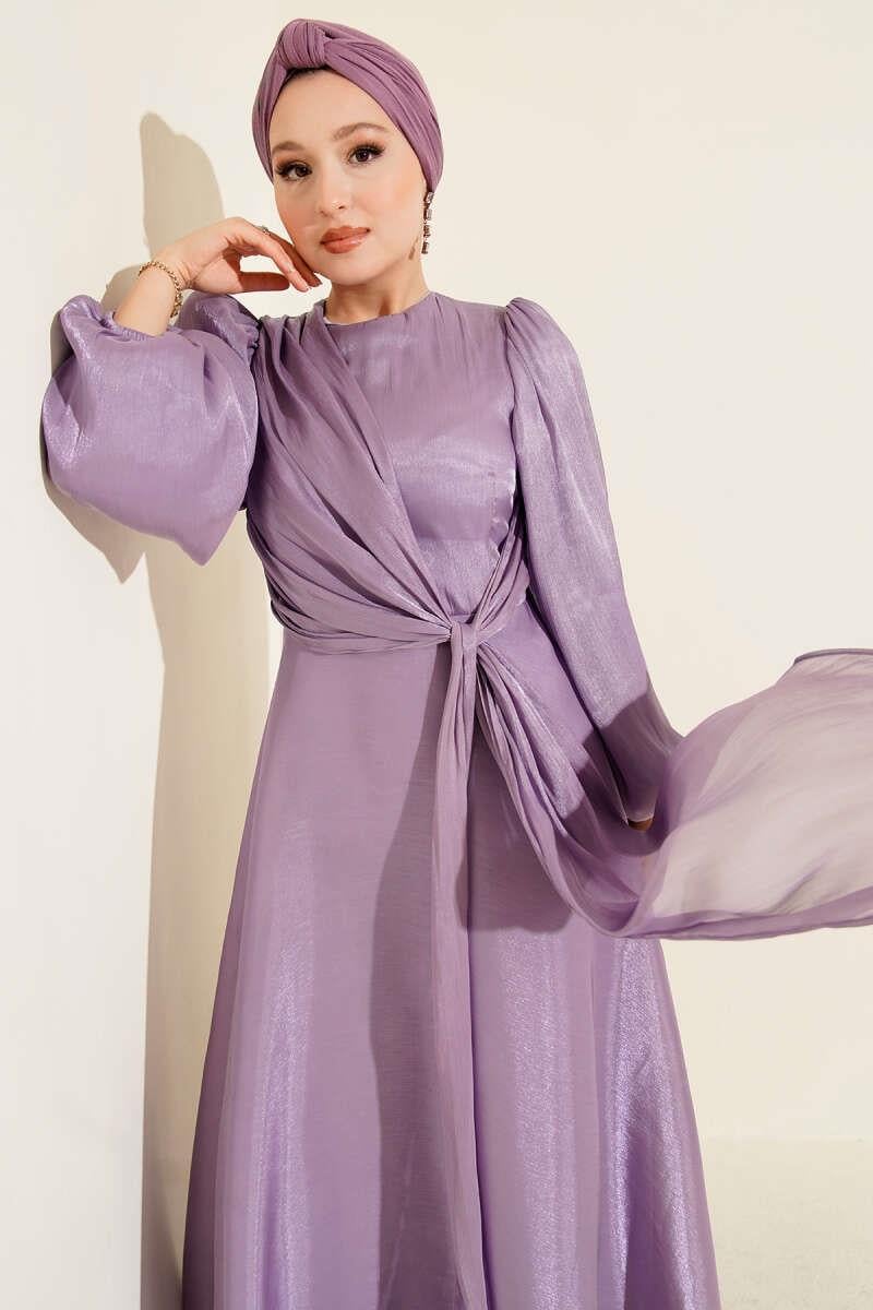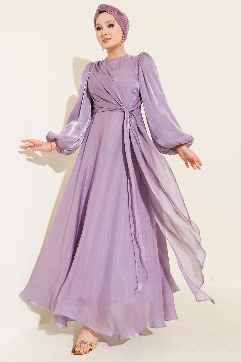 Chiffon Side Tie Evening Dress Lilac (8163-4439-679371)