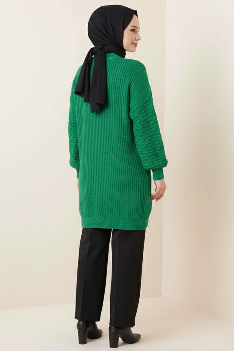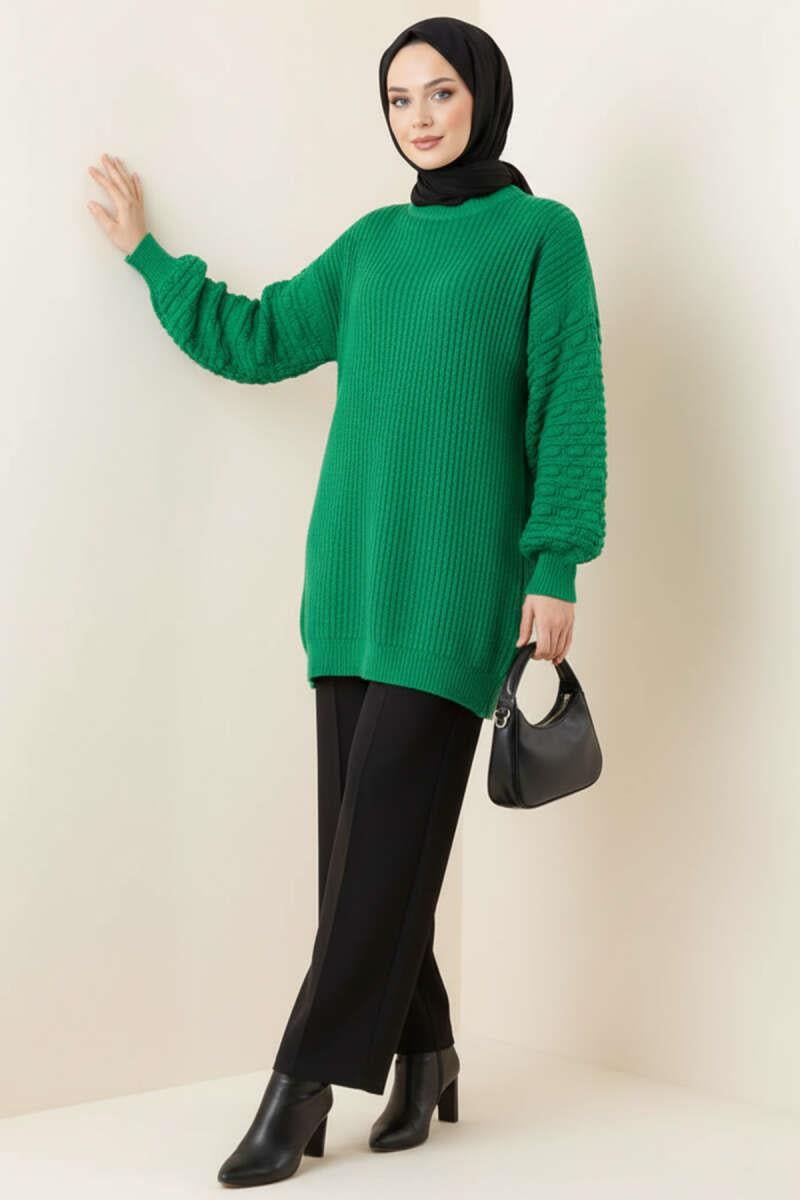Balon Kol Kabartmalı Triko Tunik Yeşil (0875-2893-683587)