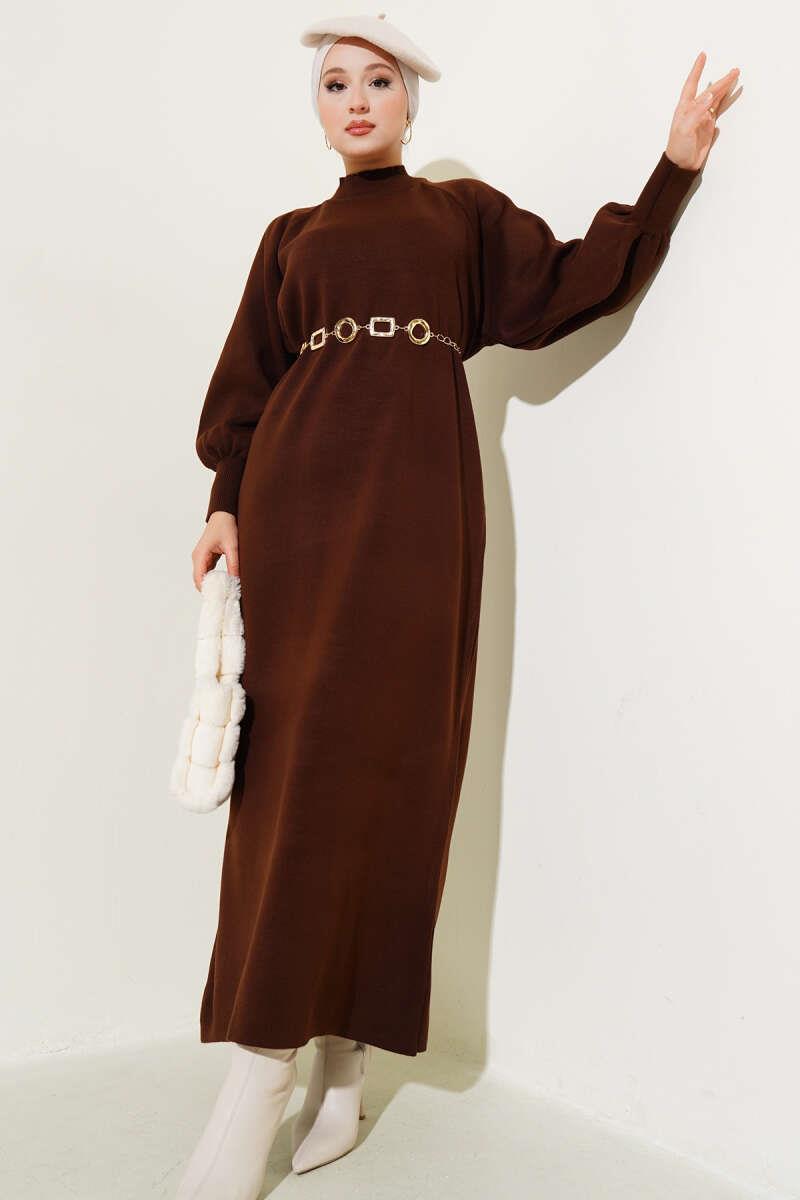 Balon Kol Triko Elbise Kahve (0875-6045-675712)