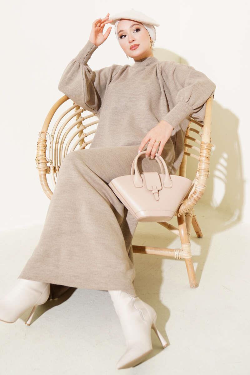 Balon Kol Triko Elbise Vizon (0875-6045-675718)