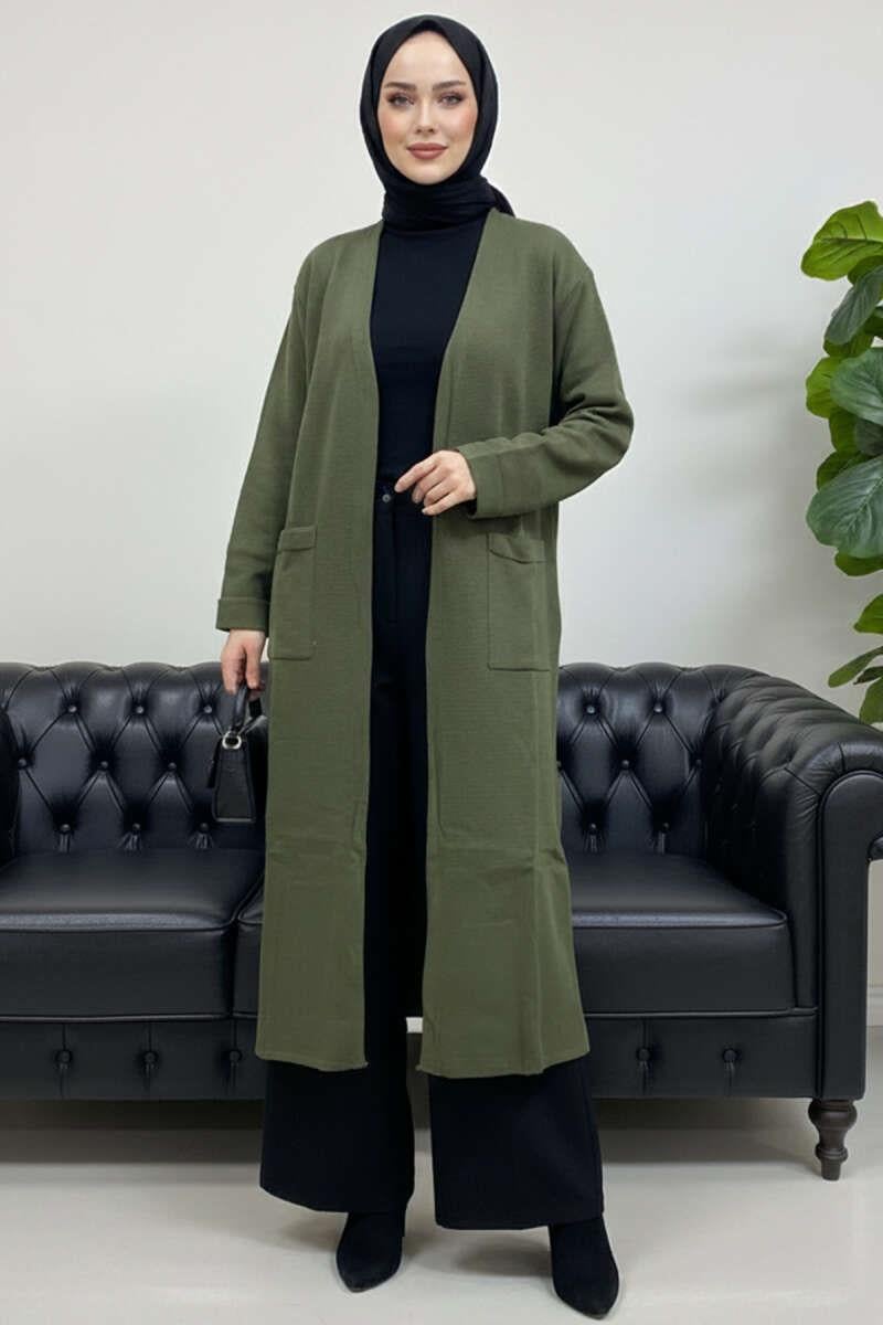 Basic Çift Cepli Uzun Triko Elbise Haki (0875-7145-670165)
