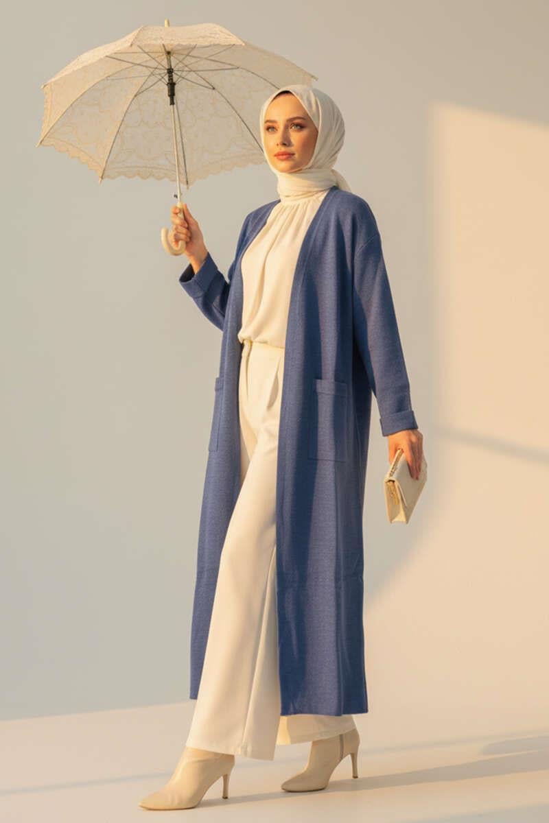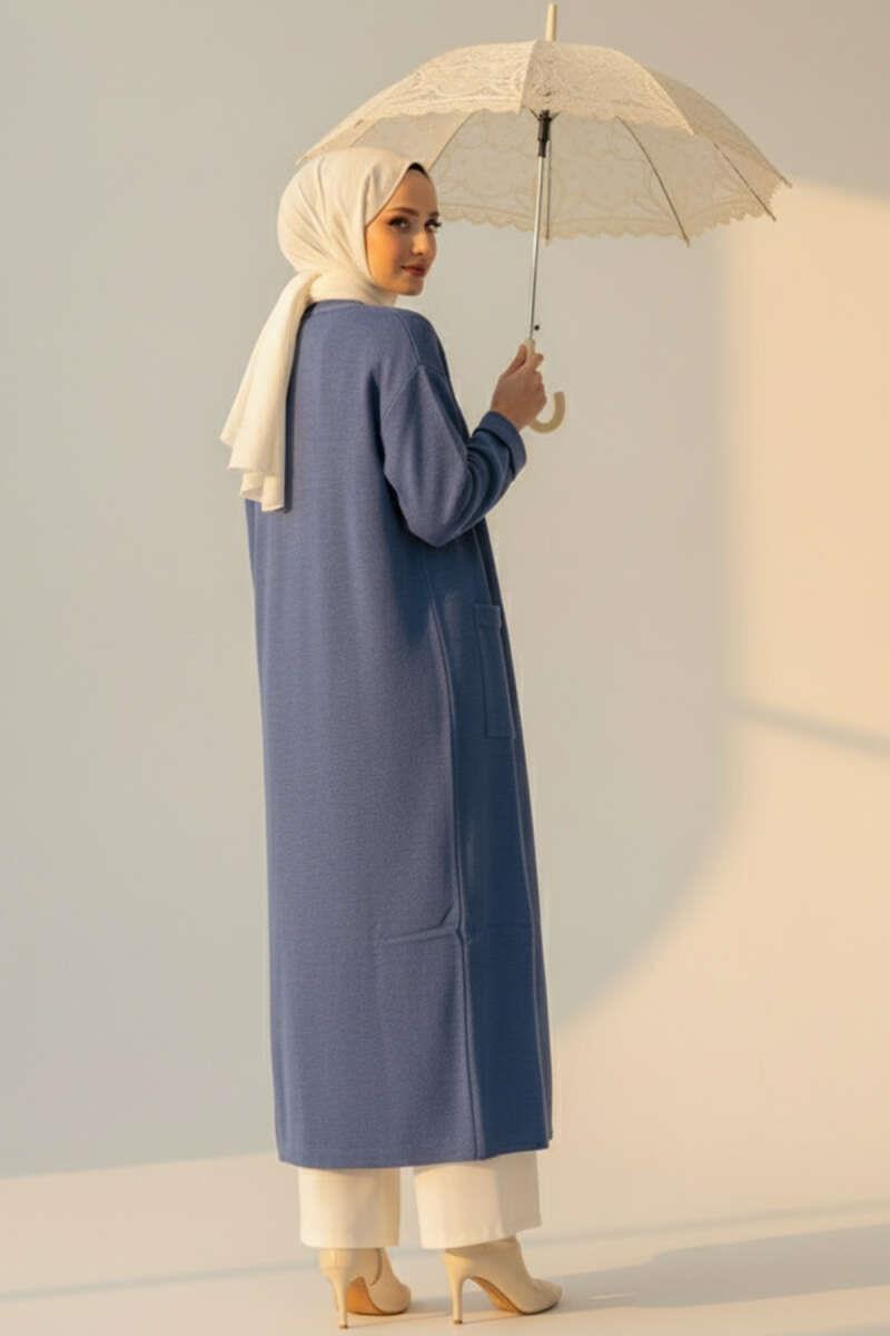 Basic Çift Cepli Uzun Triko Elbise İndigo (0875-7145-670166)
