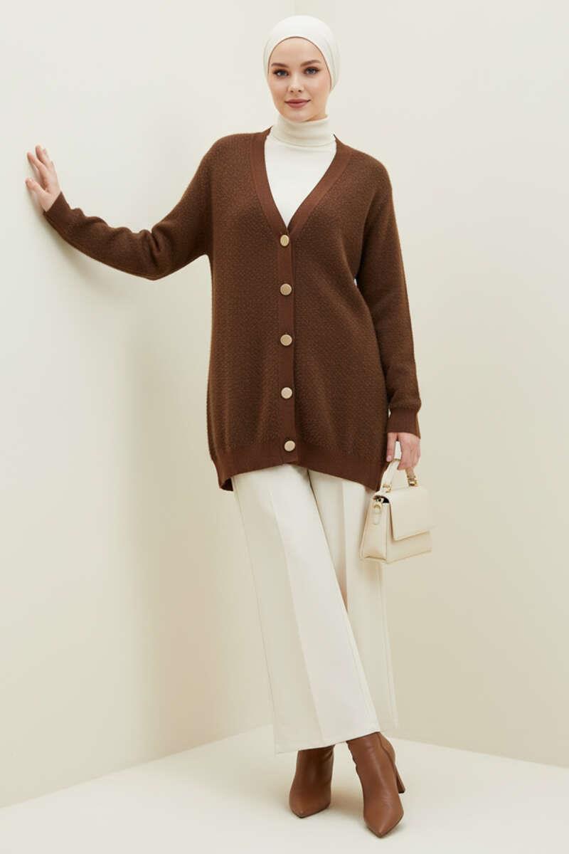 Basic Düğme Detaylı Triko Hırka Kahve (8245-1291-681839)