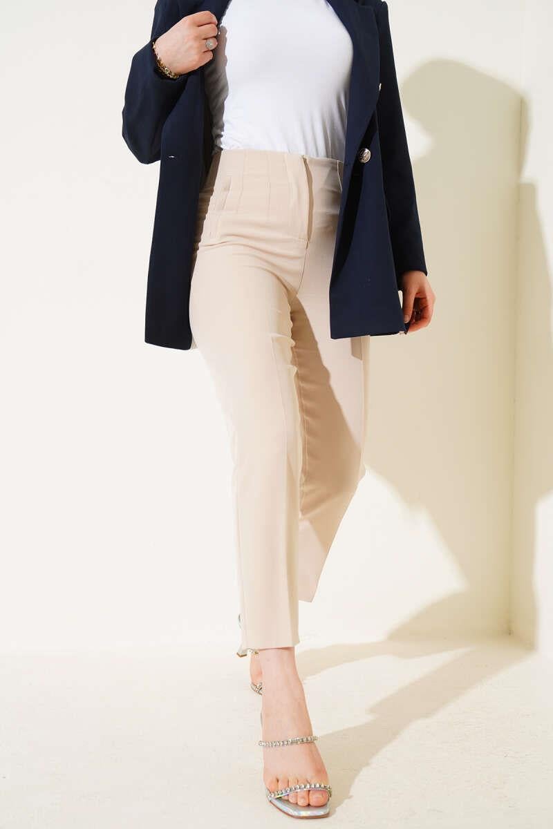 Bel Çımalı Dar Paça Kumaş Pantolon Bej (8141-1711-641029)