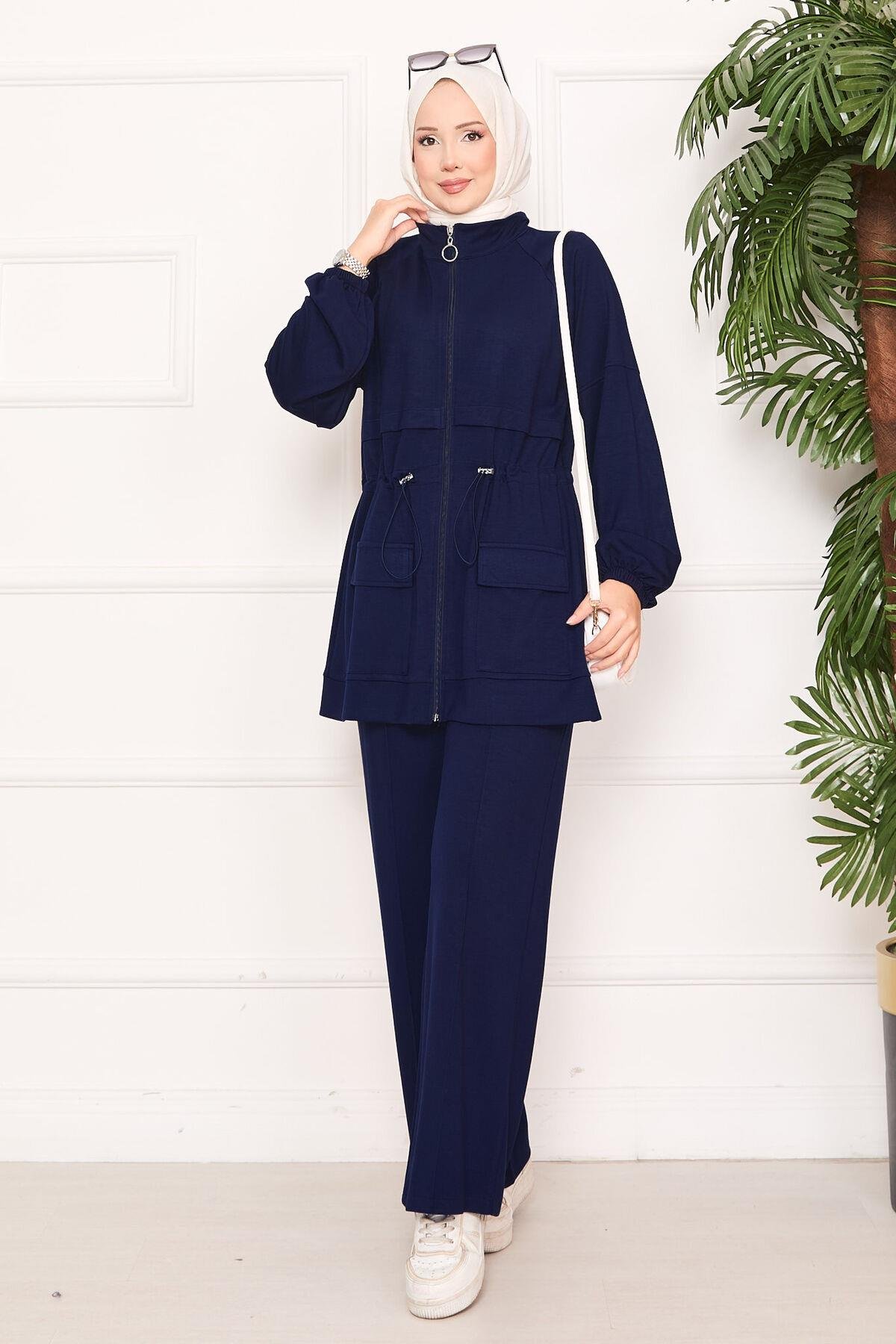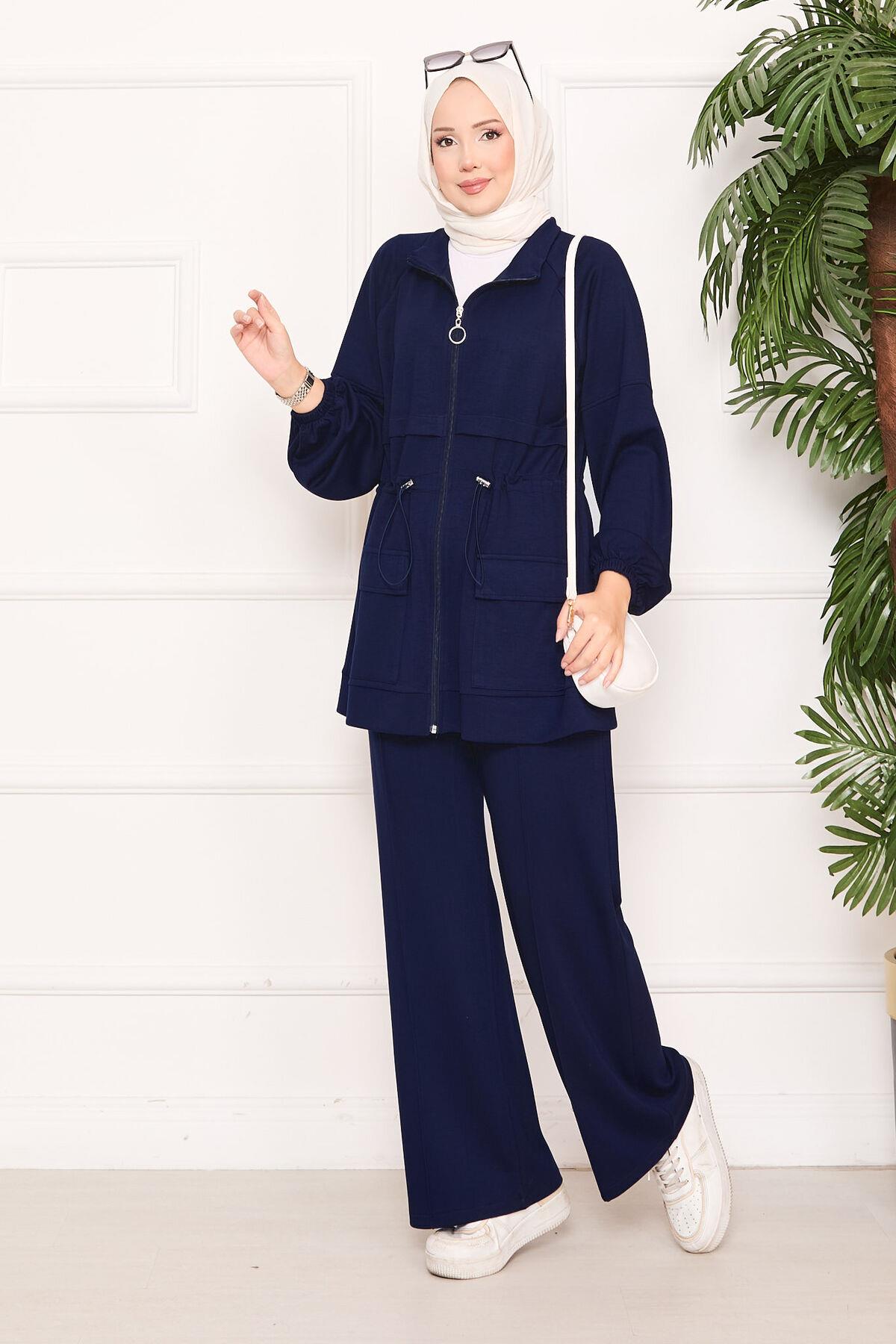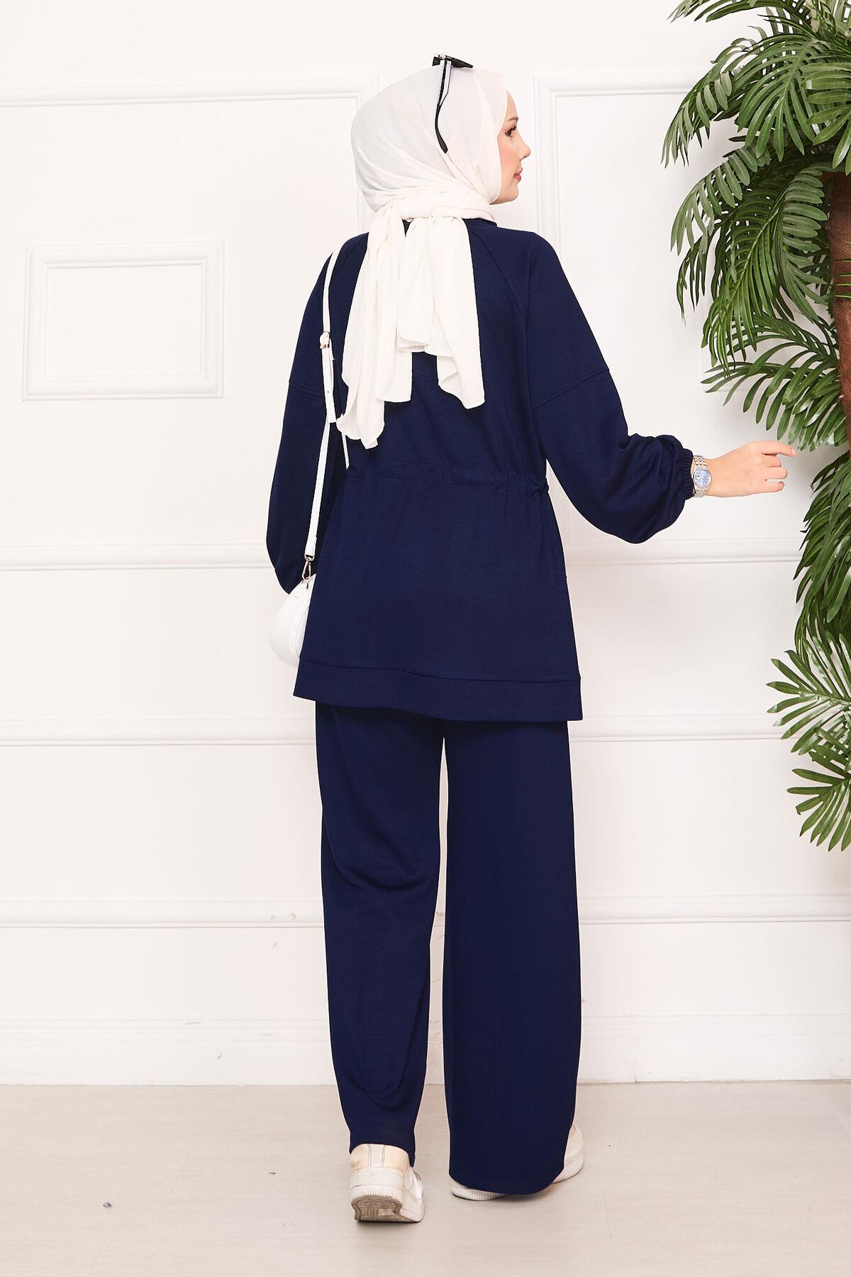 Beli Ayarlanabilir Cep Detaylı Tesettür İkili Takım Lacivert (125M00621208R3338)