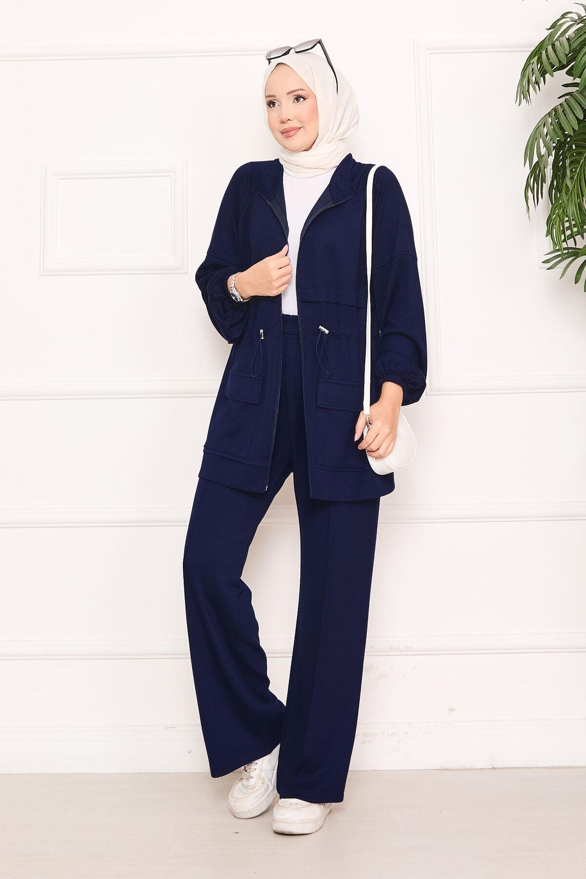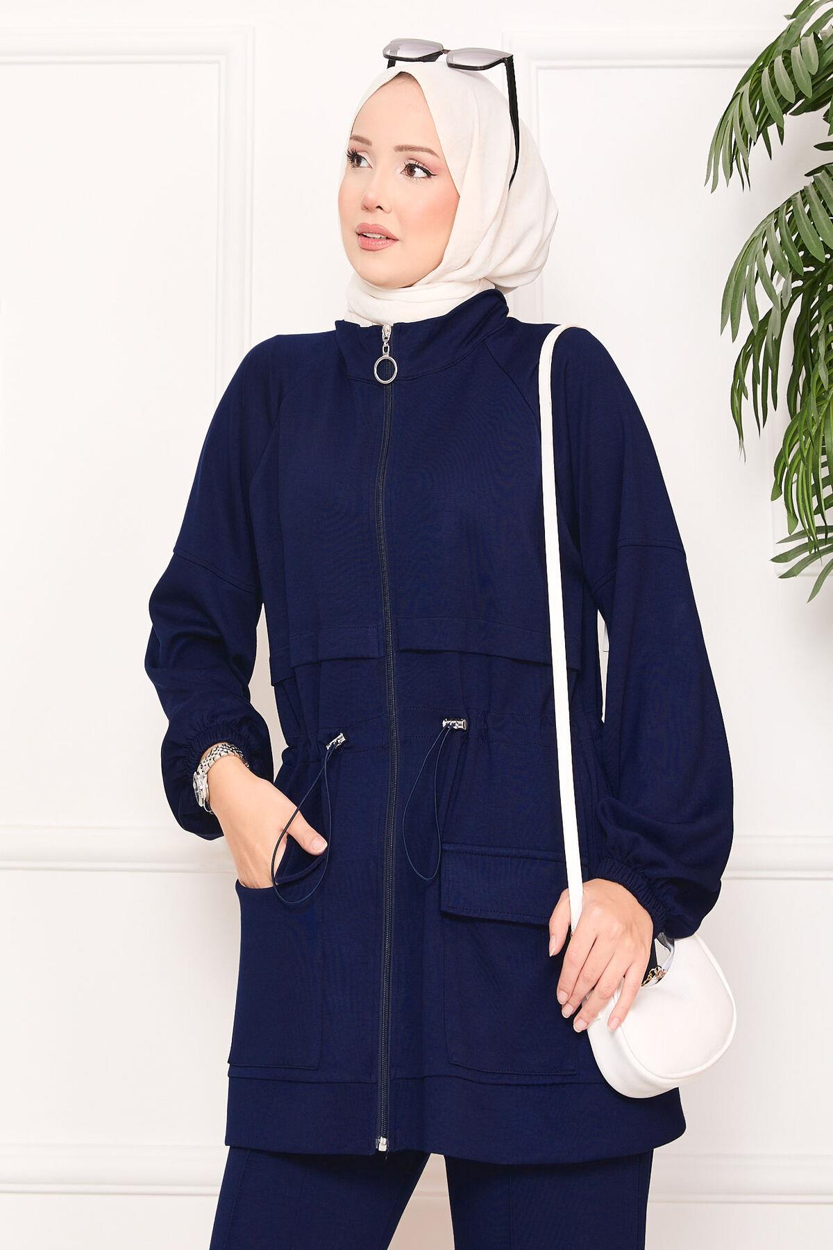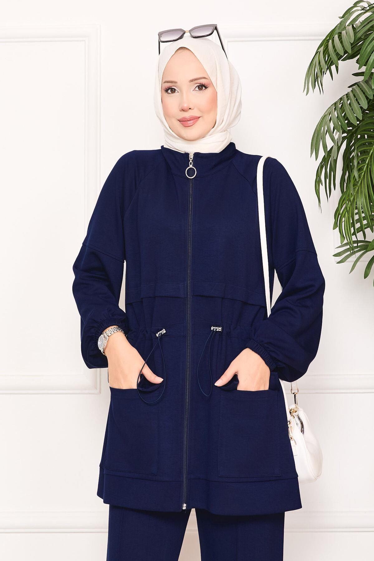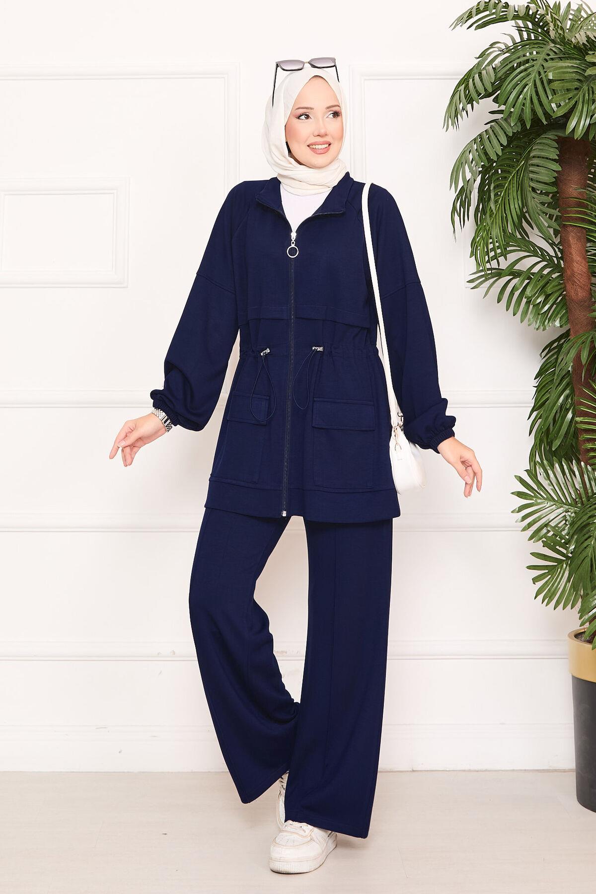 Beli Ayarlanabilir Cep Detaylı Tesettür İkili Takım Lacivert (125M00621208R3338)