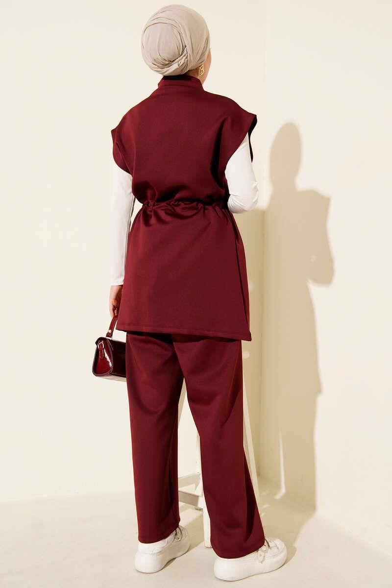 Beli Tünelli Yelekli Scuba İkili Takım Bordo (0829-5375-670466)