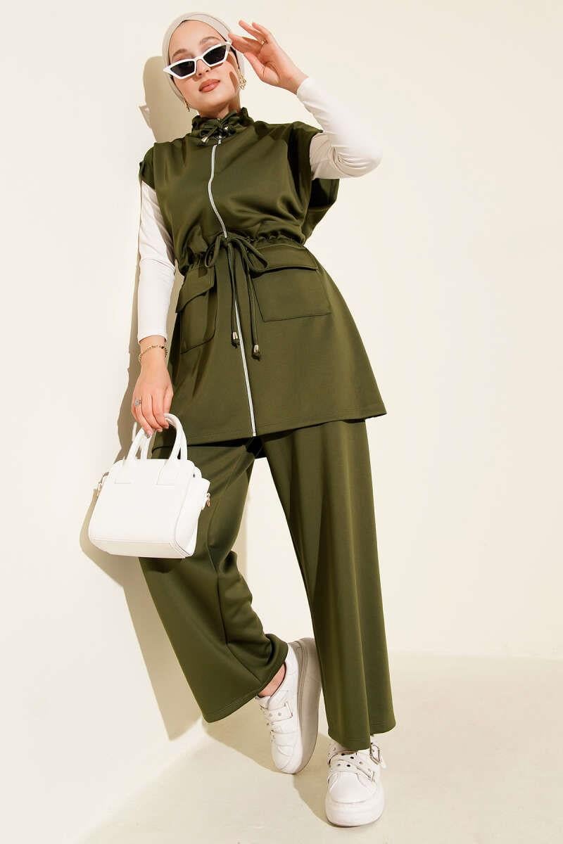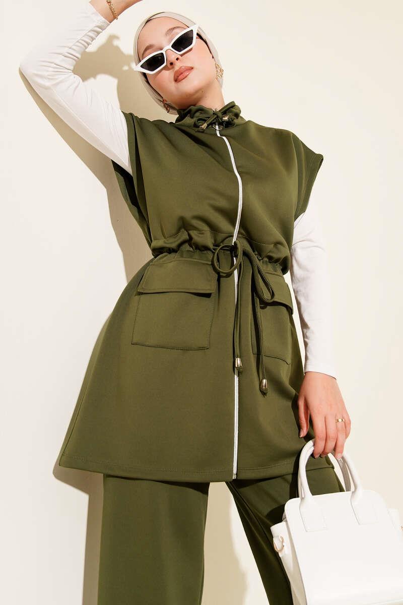 Beli Tünelli Yelekli Scuba İkili Takım Haki (0829-5375-670475)