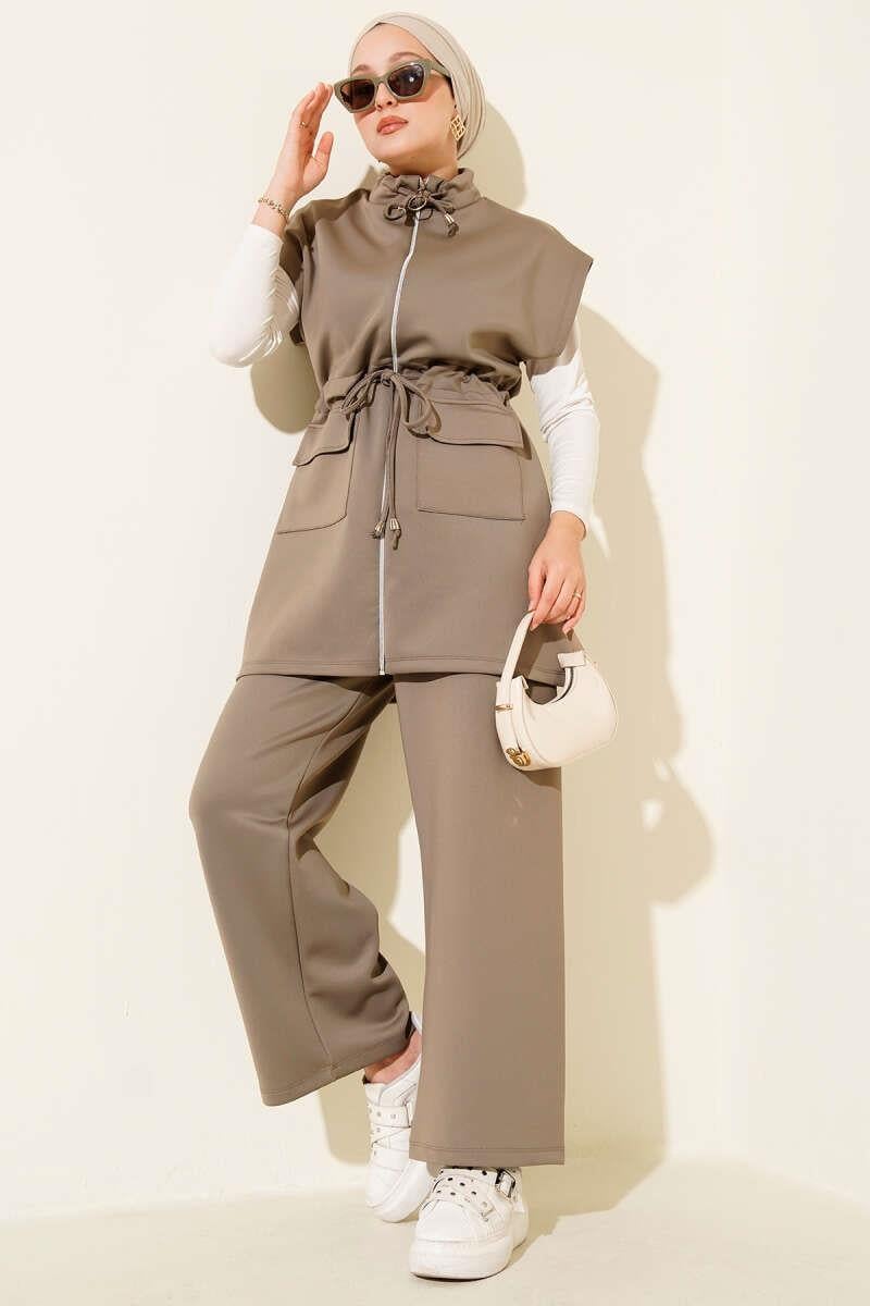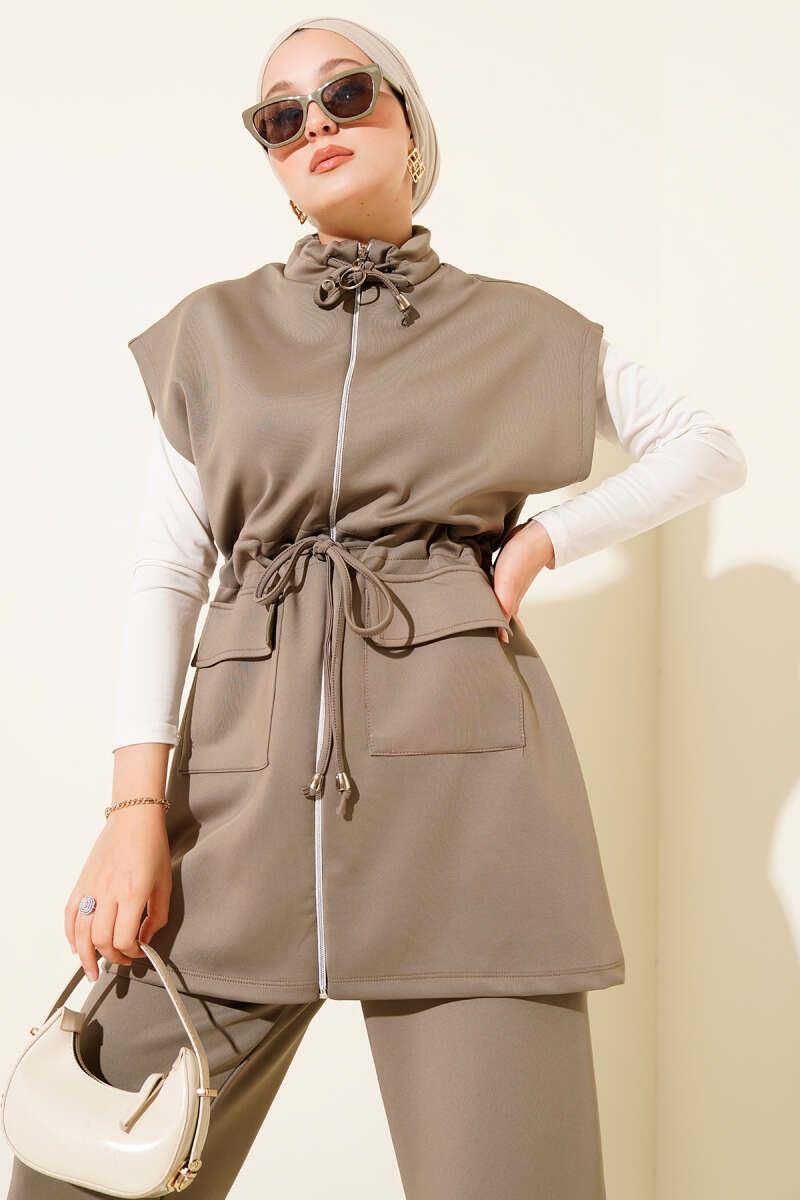 Beli Tünelli Yelekli Scuba İkili Takım Vizon (0829-5375-670487)