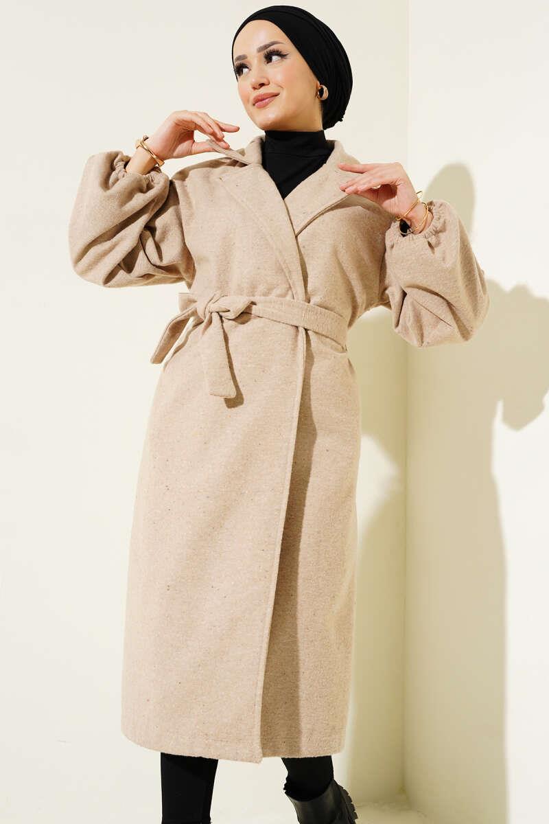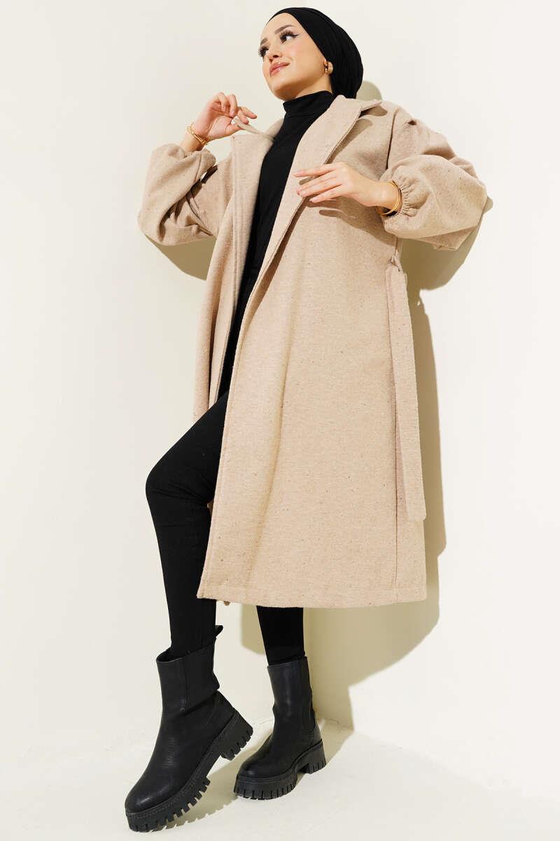 Lastikli Bilekler Kaşmir Mont Latte (0945-8002-588563)