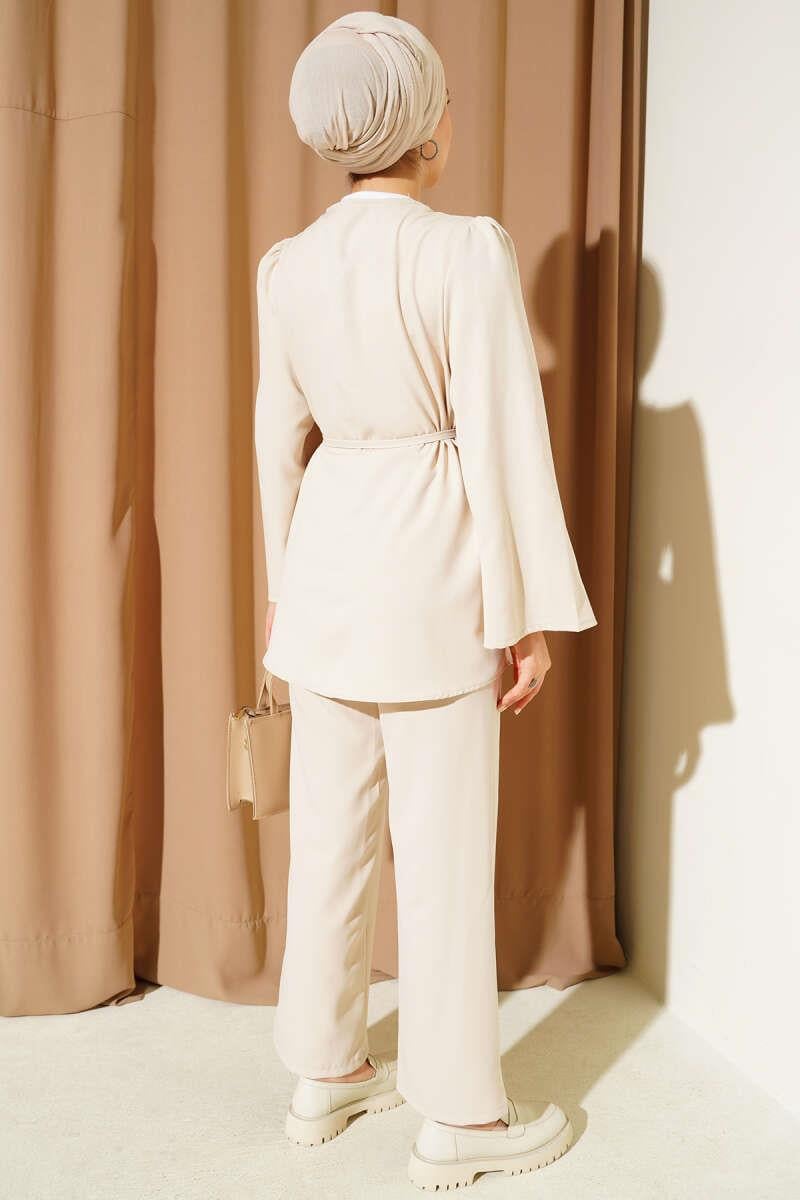 Brit Düğme Detaylı İp Kuşaklı İkili Takım Bej (8207-3389-678199)