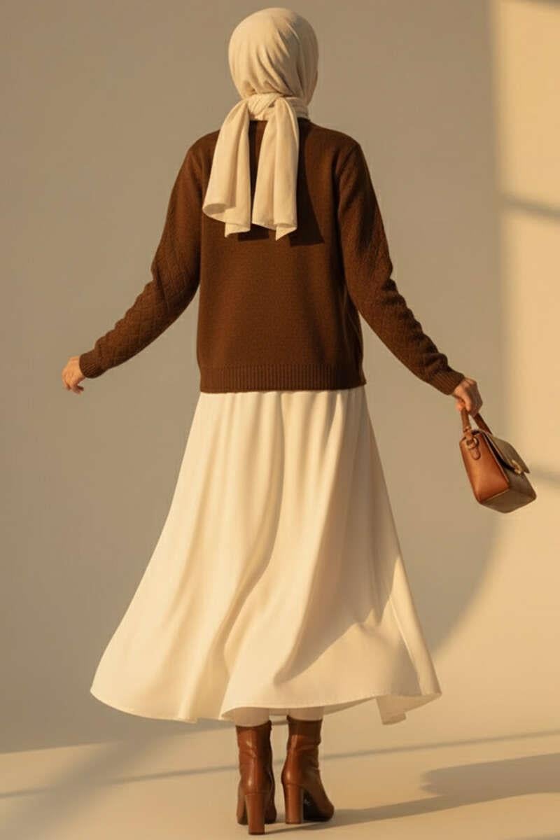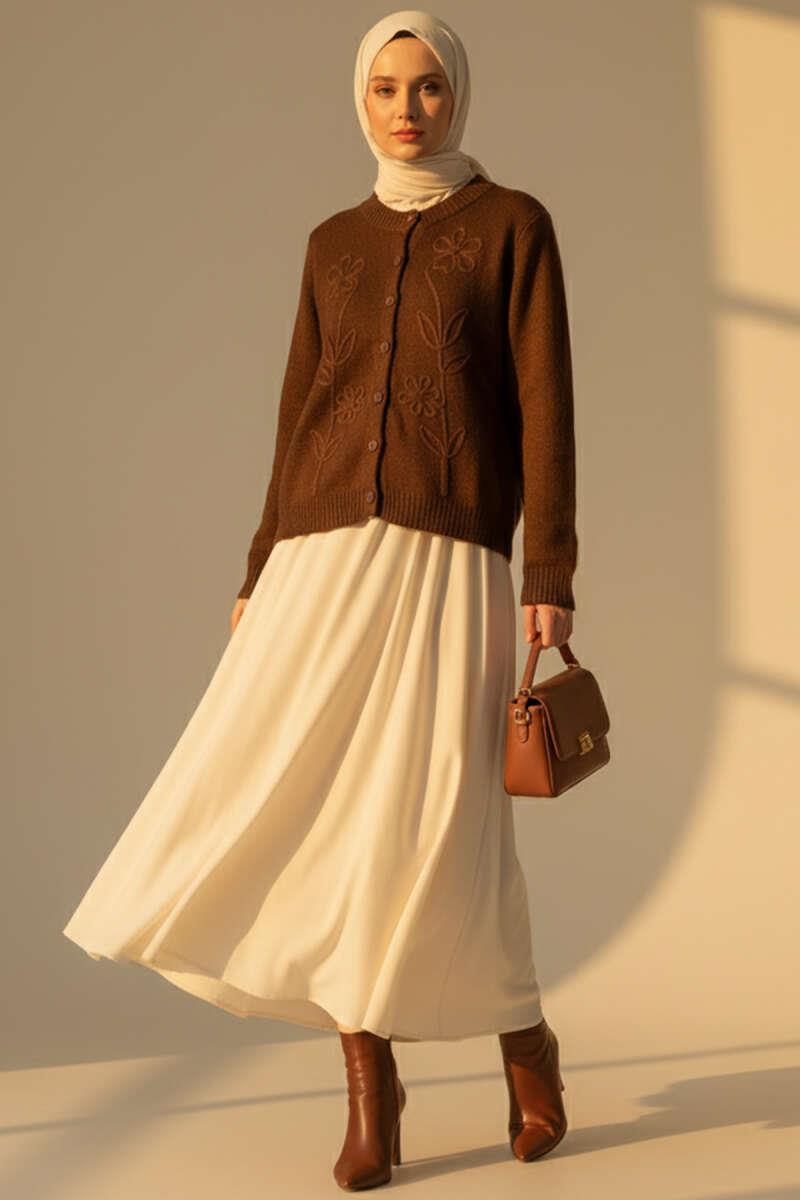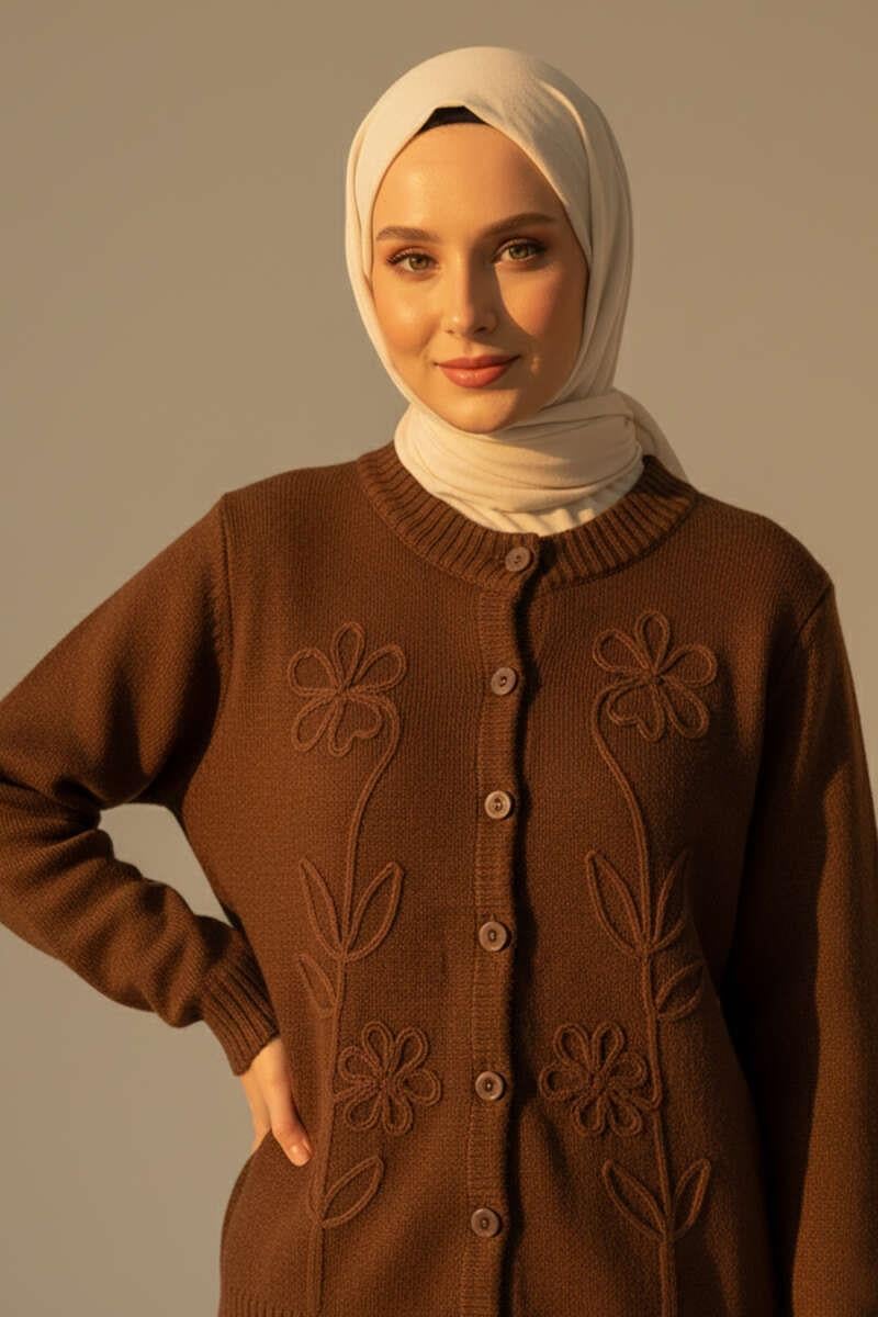 Çiçek İşlemeli Kısa Triko Hırka Kahve (8374-0925-672167)