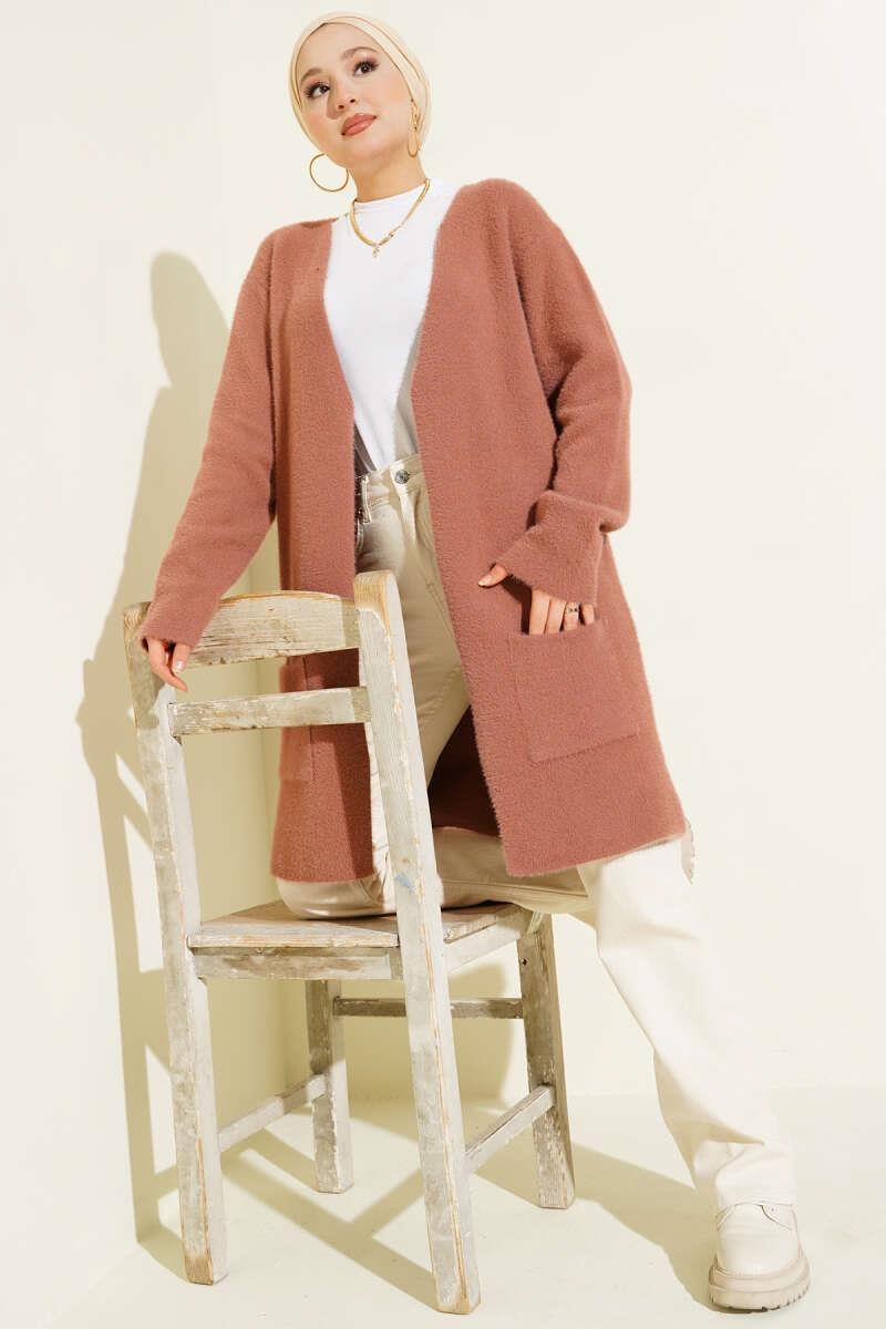 Çift Cepli Sakallı Hırka Gül Kurusu (8700-412-679710)