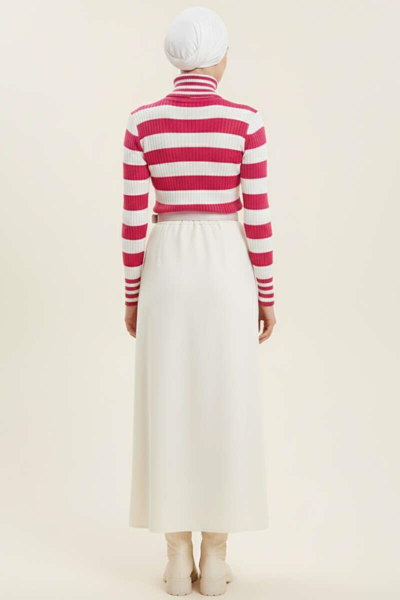 Çizgili Balıkçı Yaka Detaylı Triko Kazak Fusya (0592-6029-24-682280)