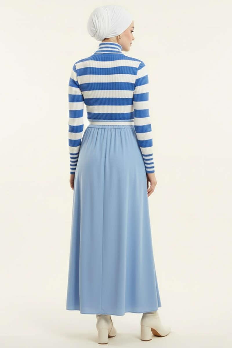 Çizgili Balıkçı Yaka Detaylı Triko Kazak Mavi (0592-6029-24-682281)
