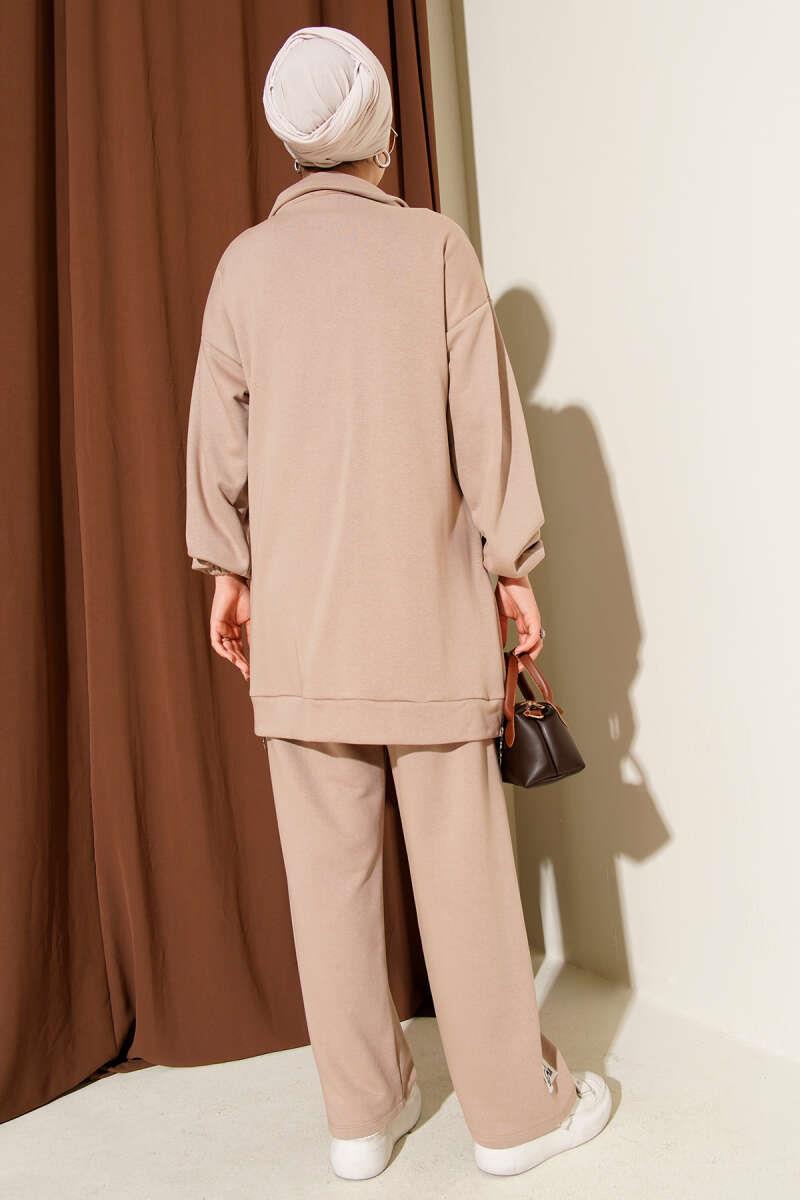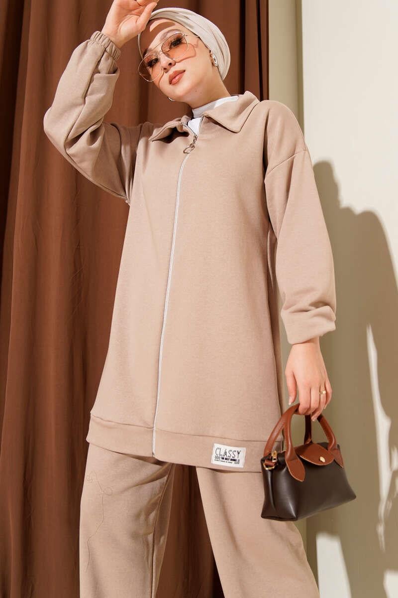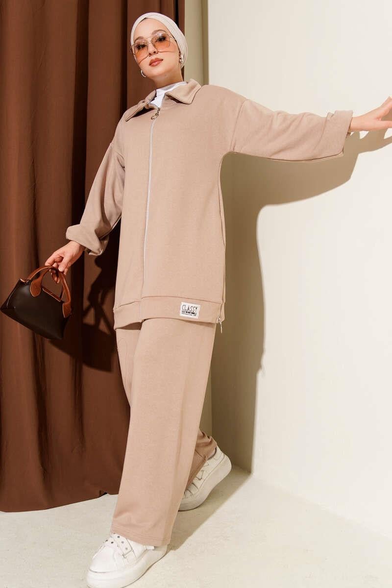 Classy Armalı Fermuarlı İkili Takım Latte (0829-5385-672345)