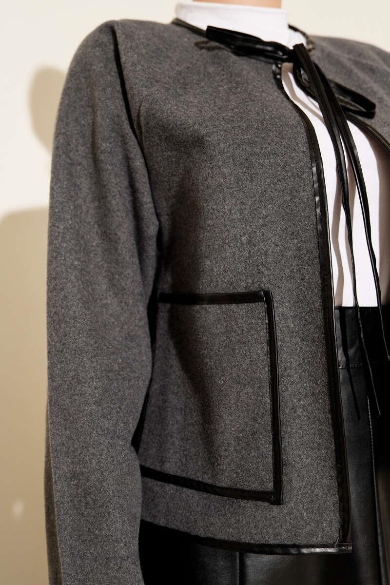 Deri Biyeli Kaşe Kısa Ceket Füme (0582-13079-671863)