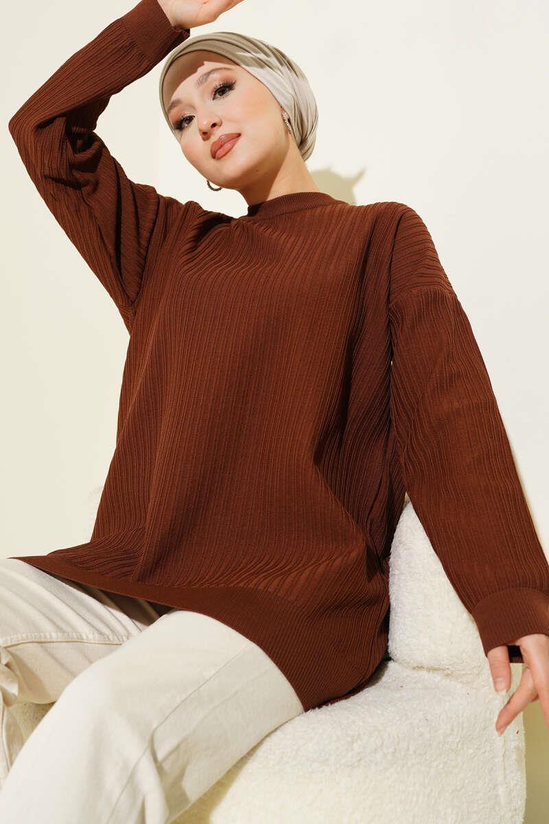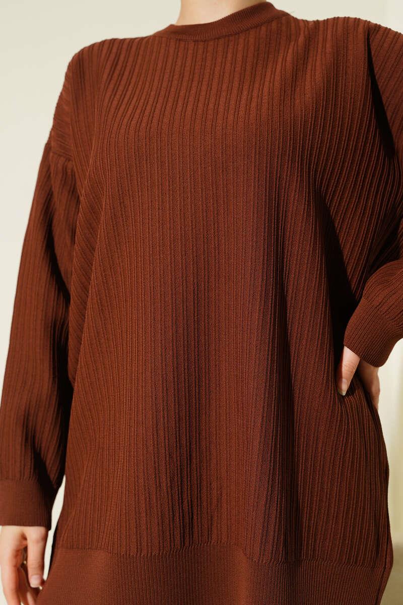 Geniş Ribanalı Triko Tunik Kahve (8374-9729-683362)