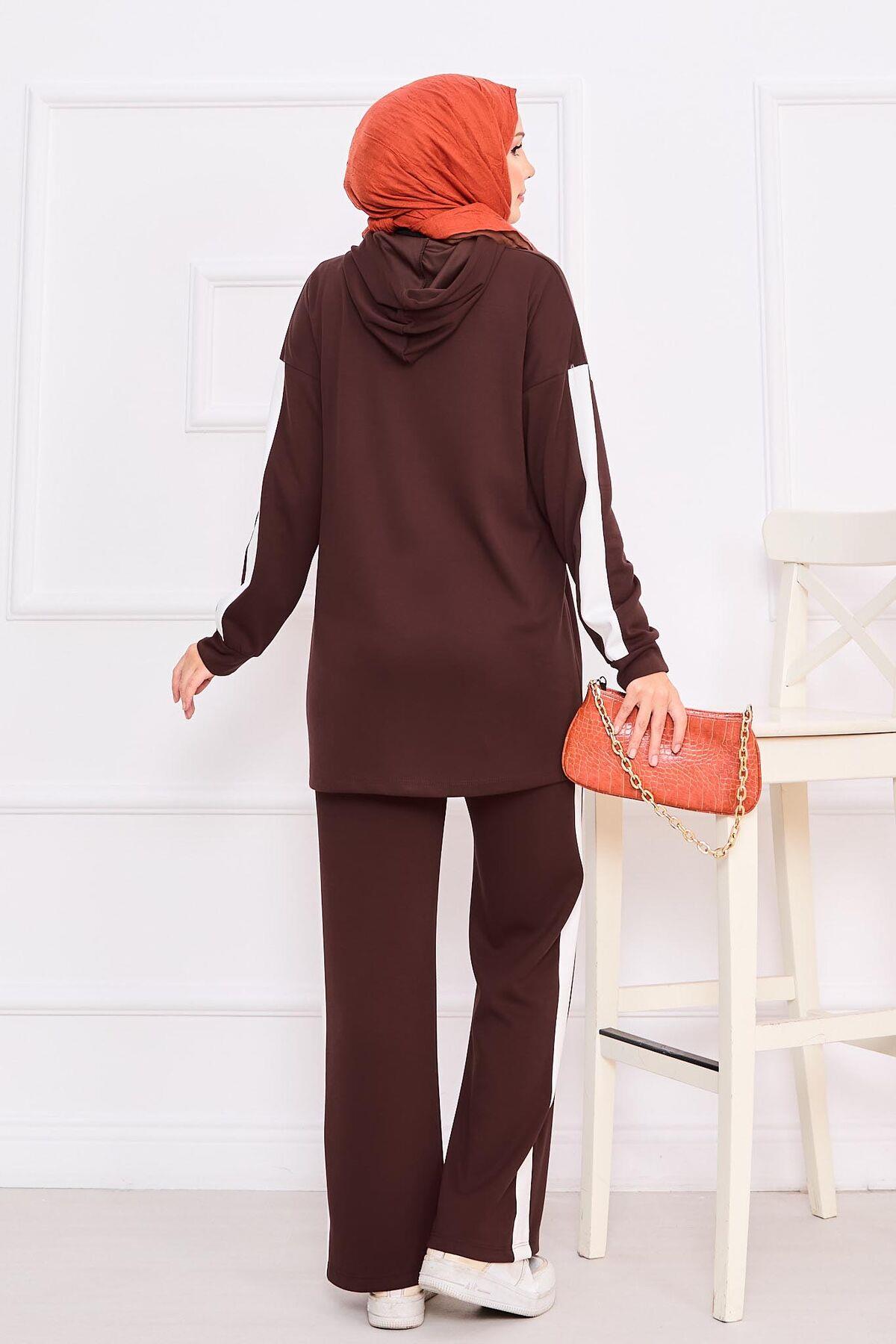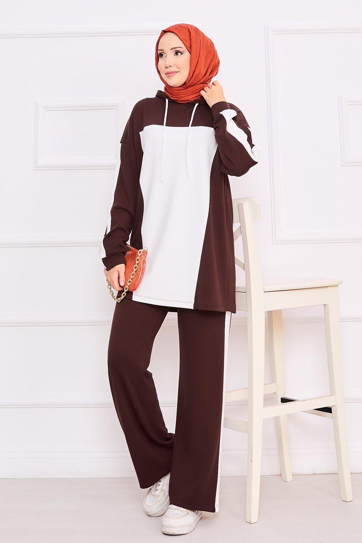 İki Renkli Kapüşonlu Tesettür İkili Takım Bordo (125M00617865R08L)