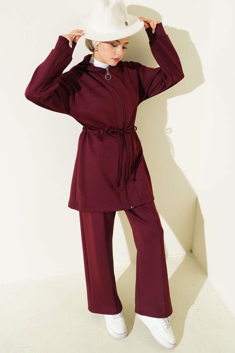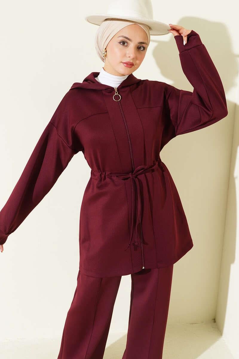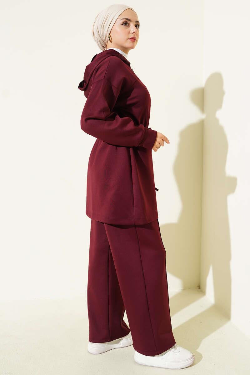 Kapüşonlu Bel Tünelli Bağcıklı İkili Takım Bordo (0829-5335-685936)