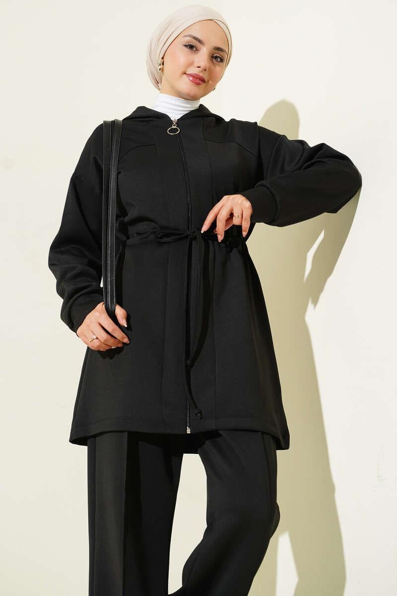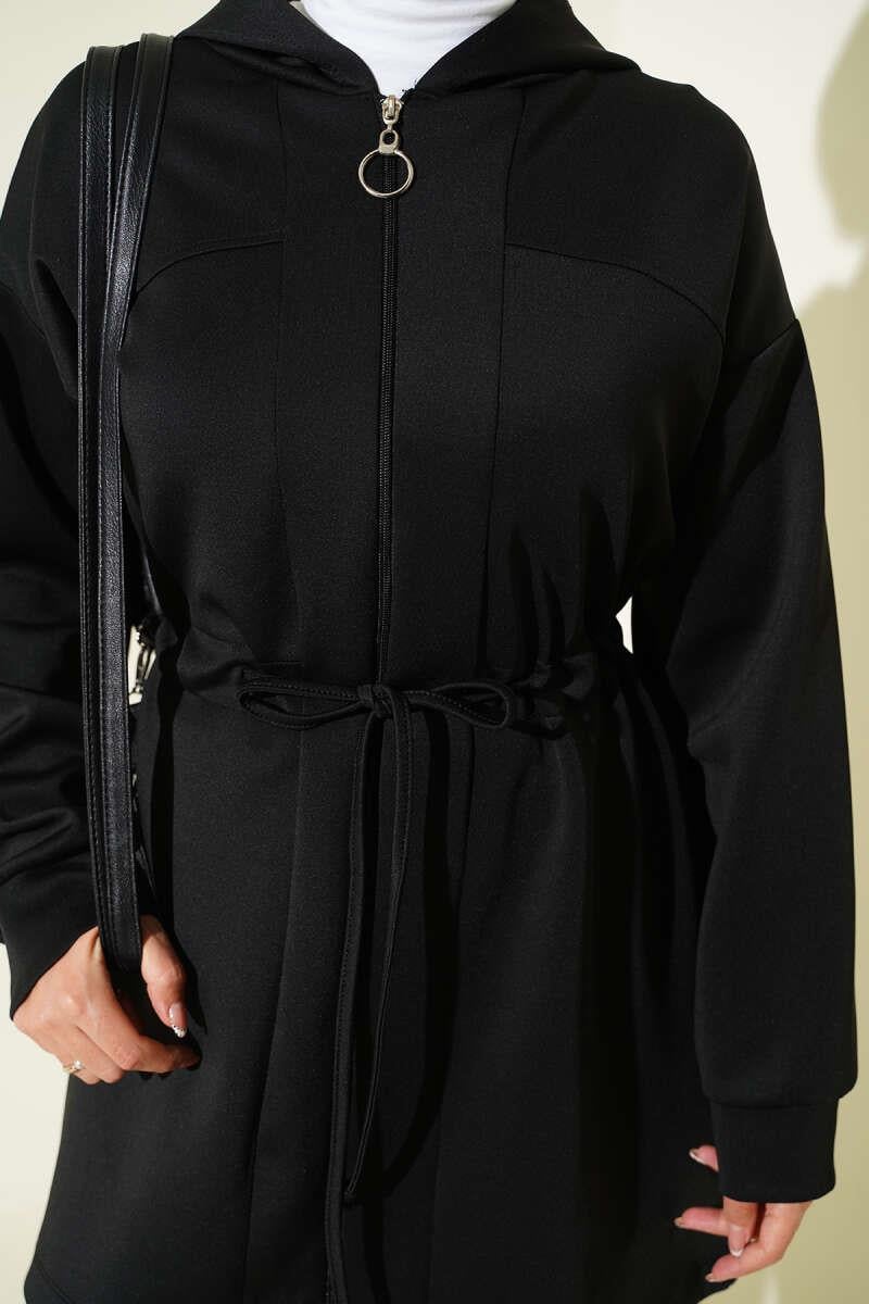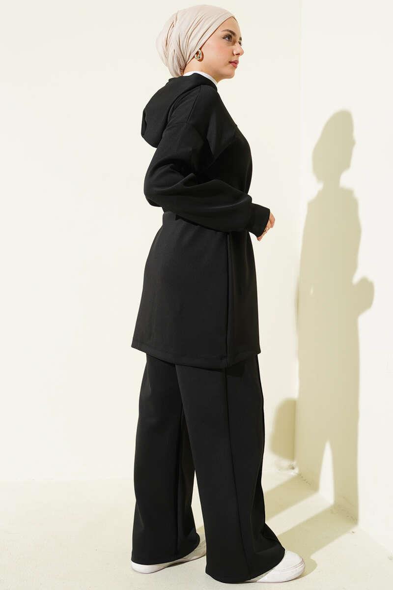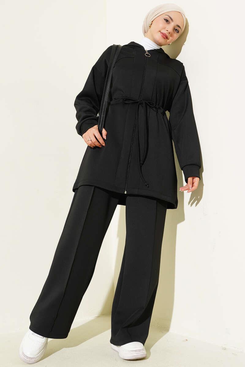 Kapüşonlu Bel Tünelli Bağcıklı İkili Takım Siyah (0829-5335-685952)