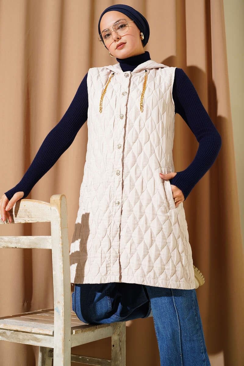 Kapuşonlu Kapitone Kısa Yelek Bej (0569-3219-10-680611)