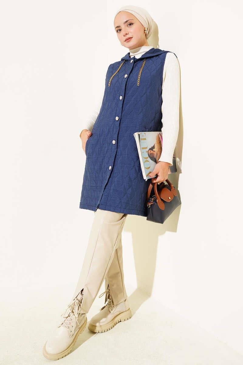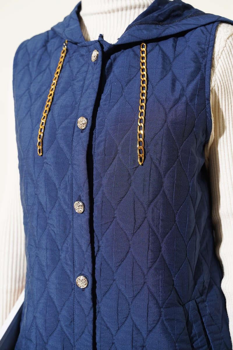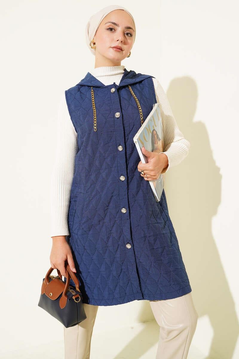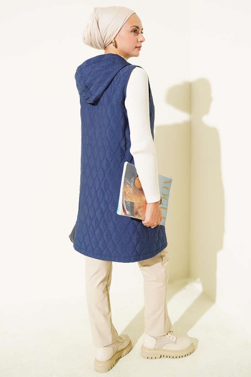 Kapuşonlu Kapitone Kısa Yelek Lacivert (0569-3219-10-680621)
