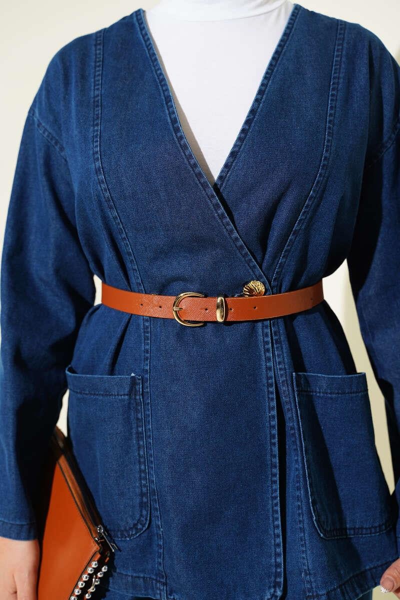 Kemerli Düğmeli Kot İkili Takım Kot (0999-6519-686260)