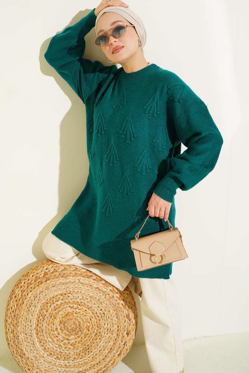 Kiraz Salkımlı Kabartma Yumoş Triko Tunik Nefti (0589-6001-678028)