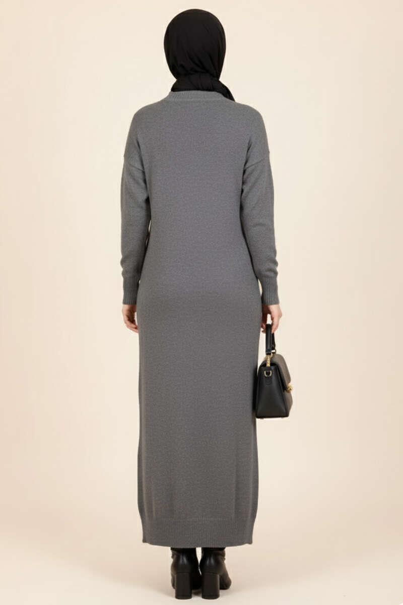 Kıvrım Örgülü Triko Elbise Füme (0875-4440-685537)