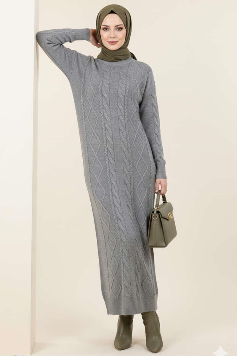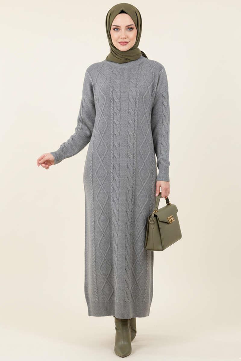 Kıvrım Örgülü Triko Elbise Gri (0875-4440-685960)