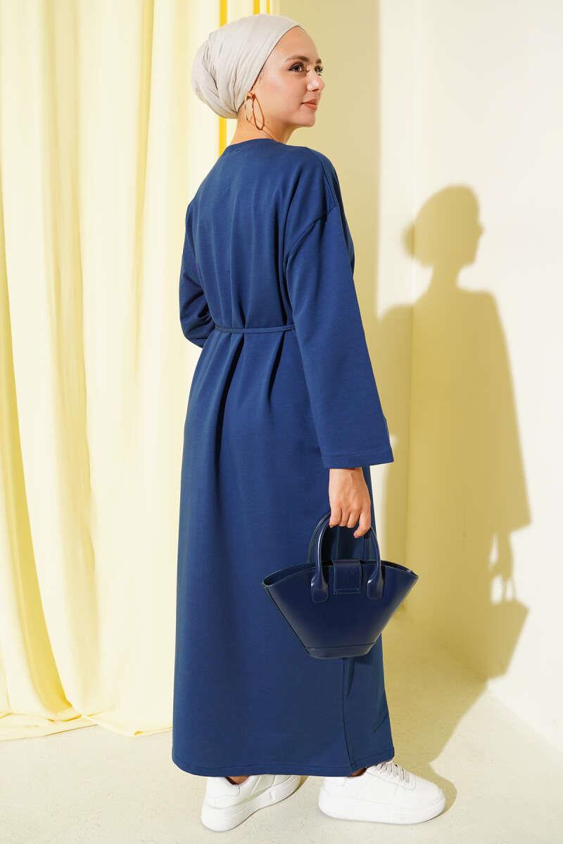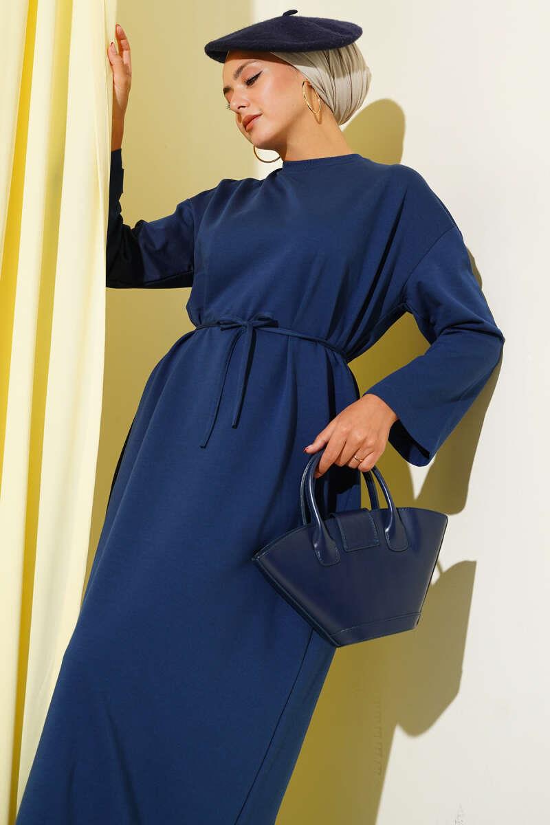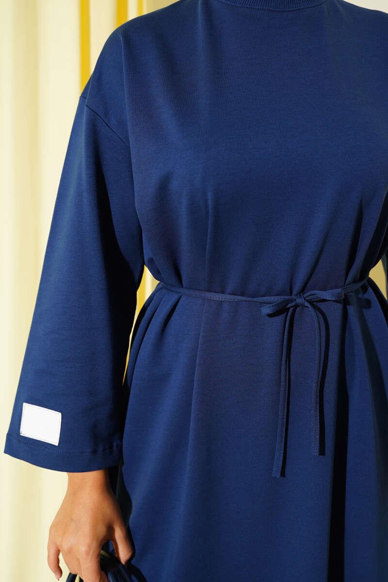 Kol Ucu Armalı İp Bağcıklı Elbise Lacivert (0537-4504-671683)