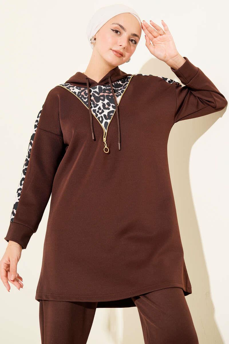 Leopar Garnili Kapşonlu İkili Takım Acı Kahve (0026-3205-679395)