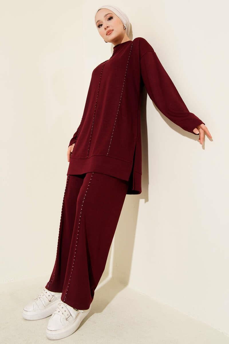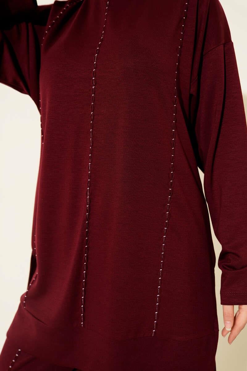 Loyşa Dikiş Detaylı İkili Takım Bordo (0829-5383-670349)