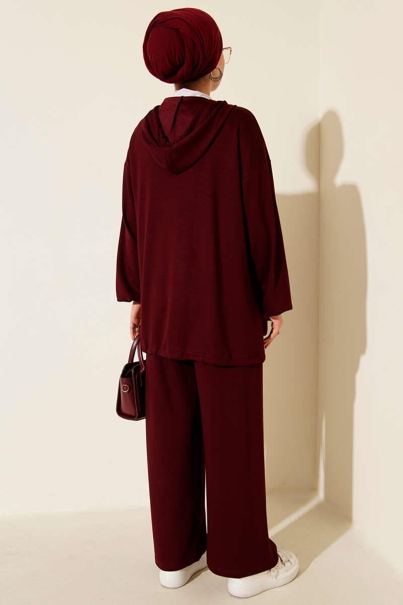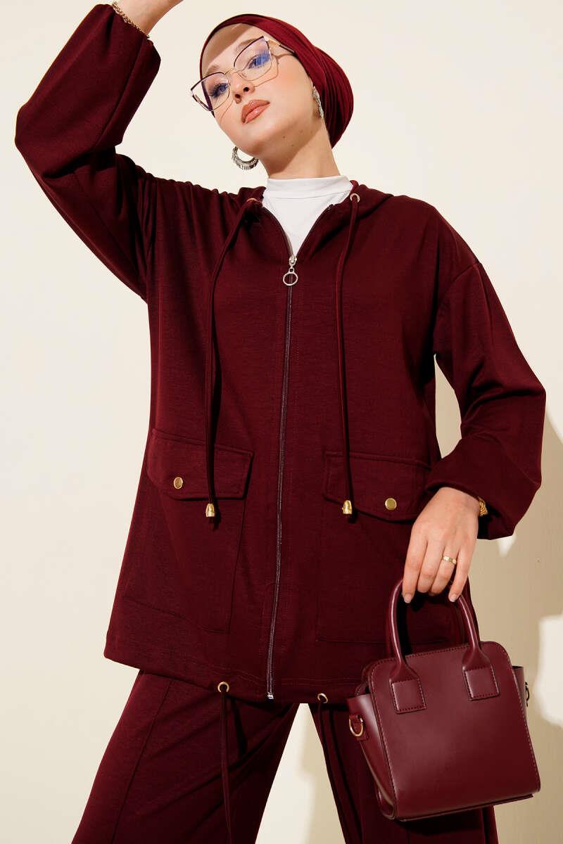 Loyşa Fermuarlı Cepli Kapüşonlu İkili Takım Bordo (0026-3170-676809)