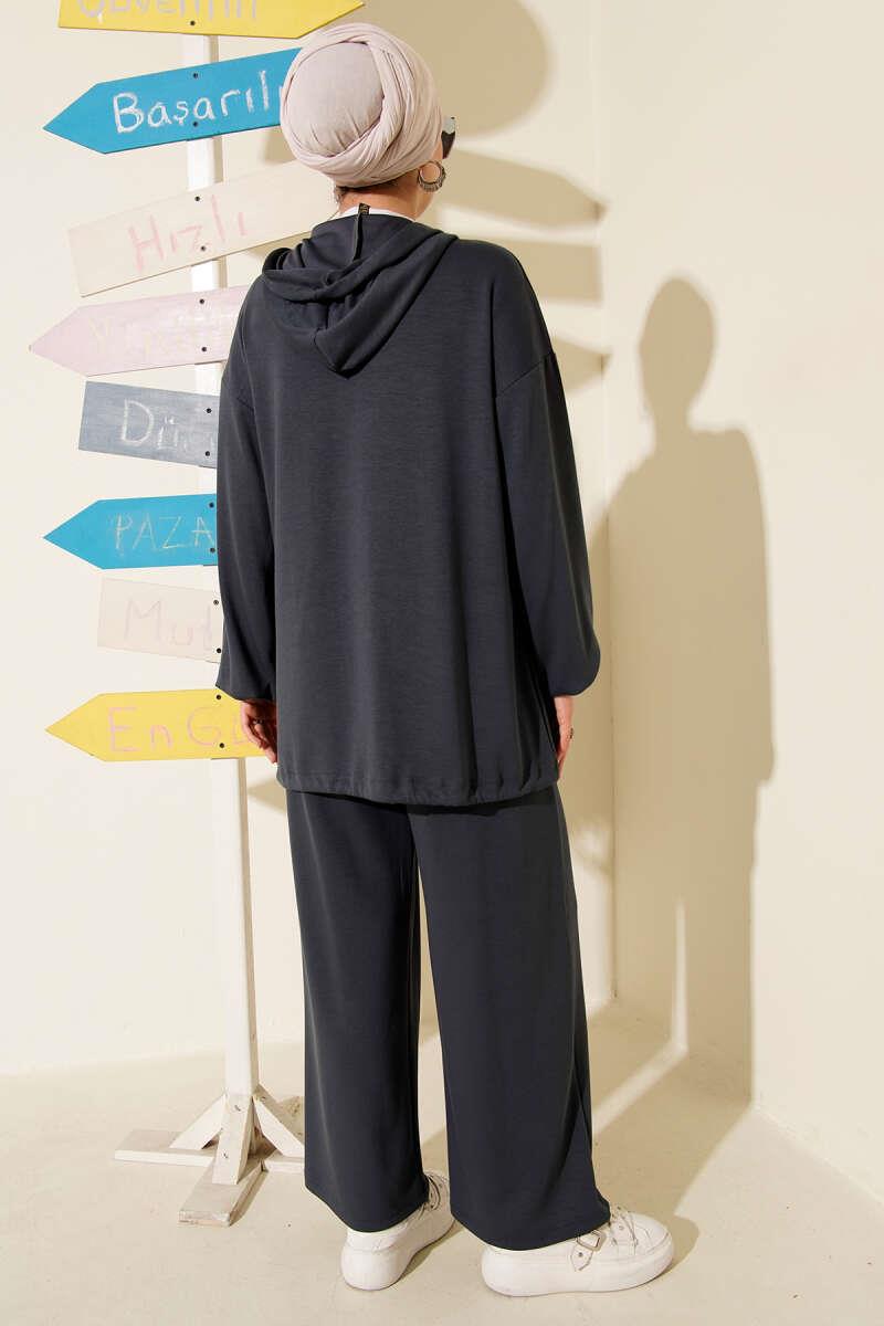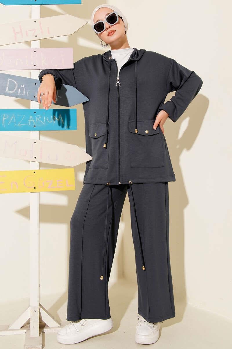 Loyşa Fermuarlı Cepli Kapüşonlu İkili Takım Füme (0026-3170-676813)