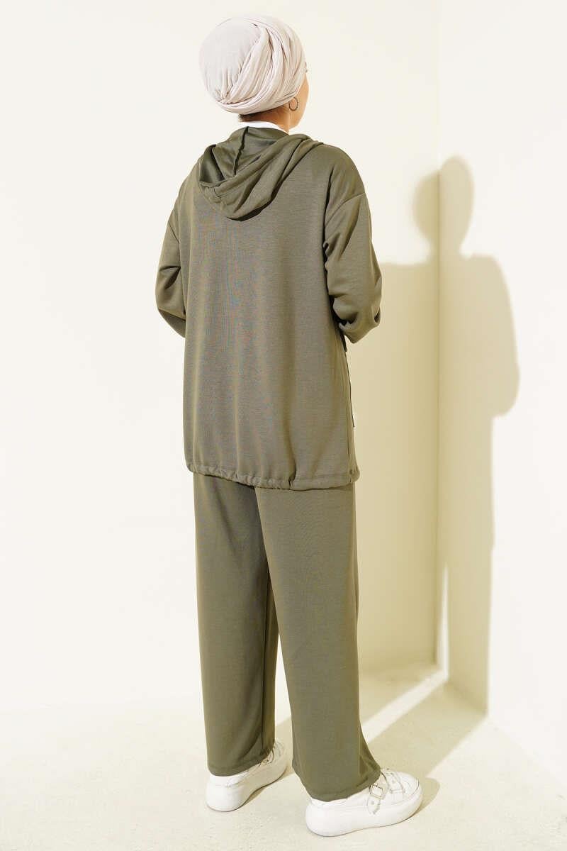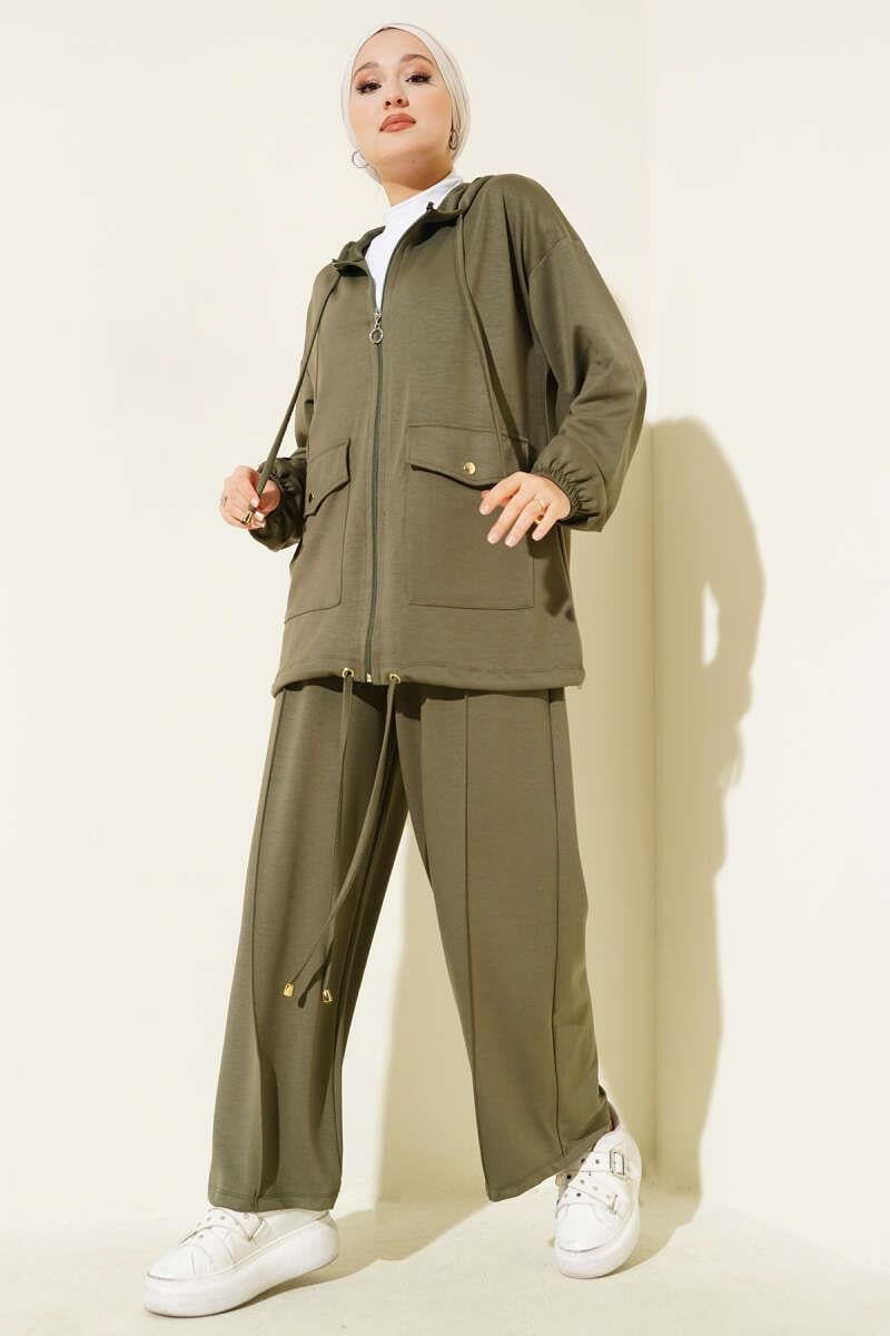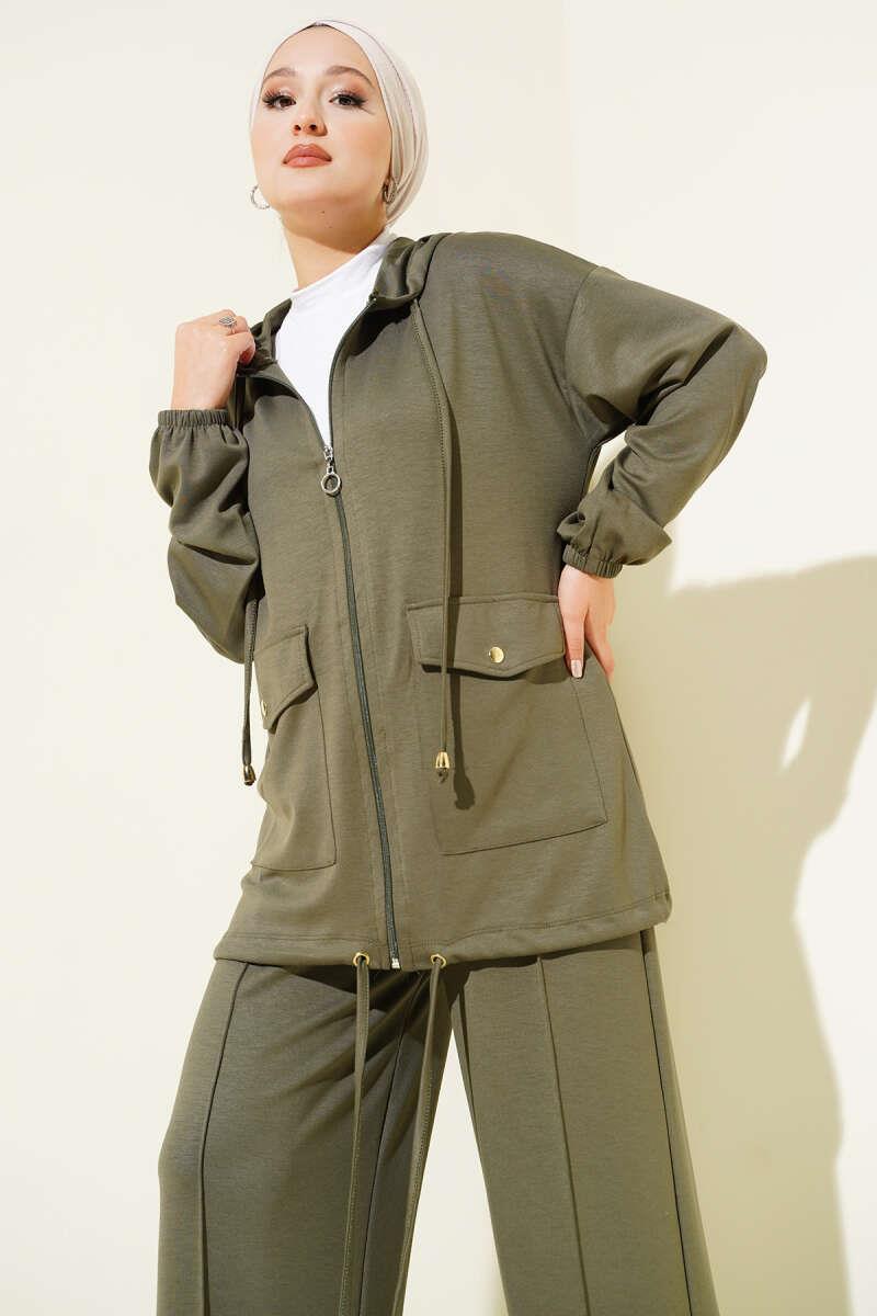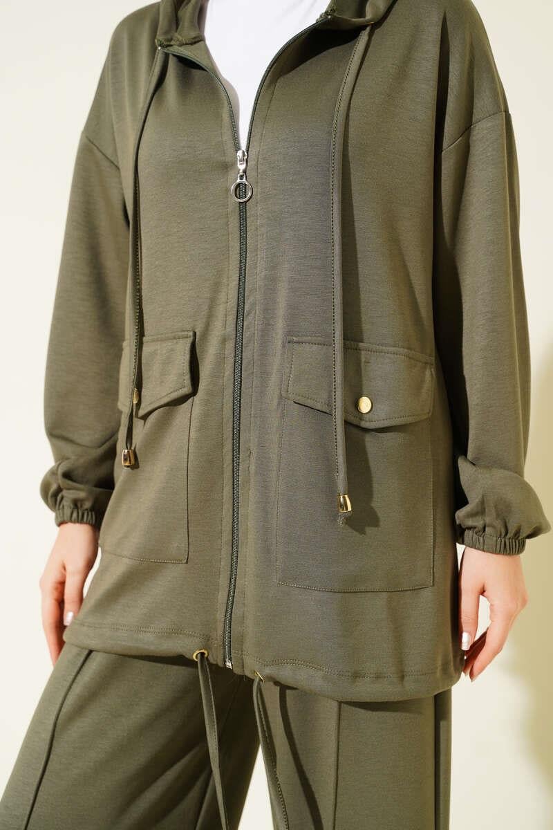 Loyşa Fermuarlı Cepli Kapüşonlu İkili Takım Haki (0026-3170-676773)