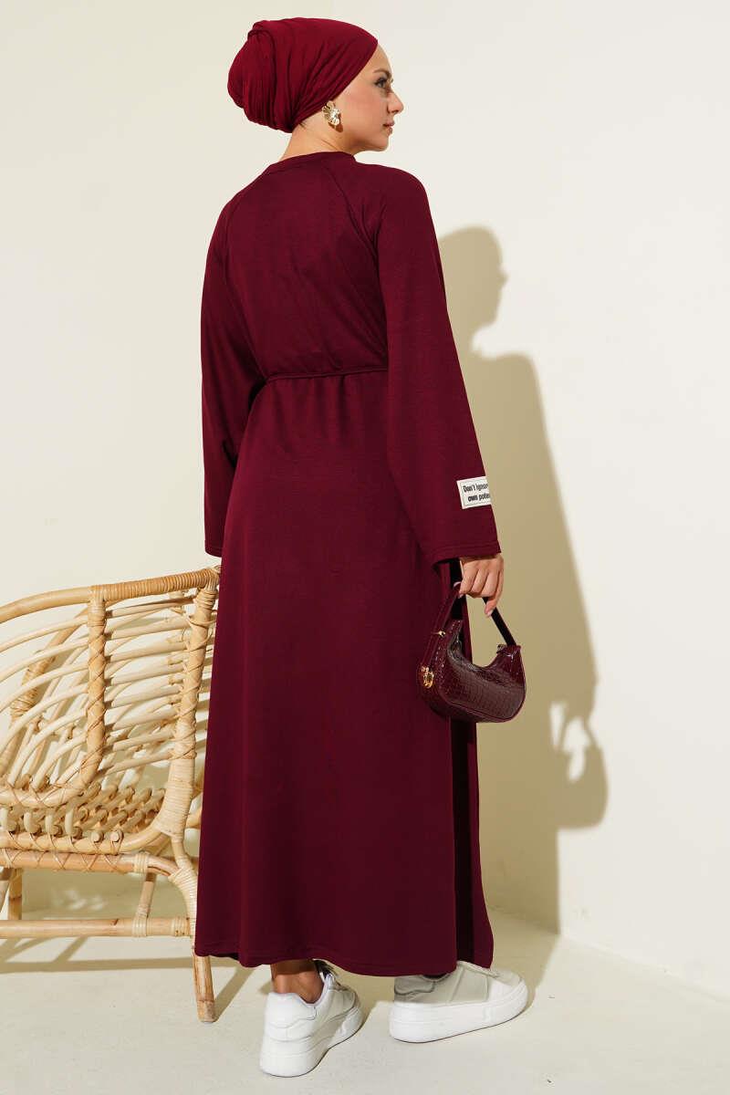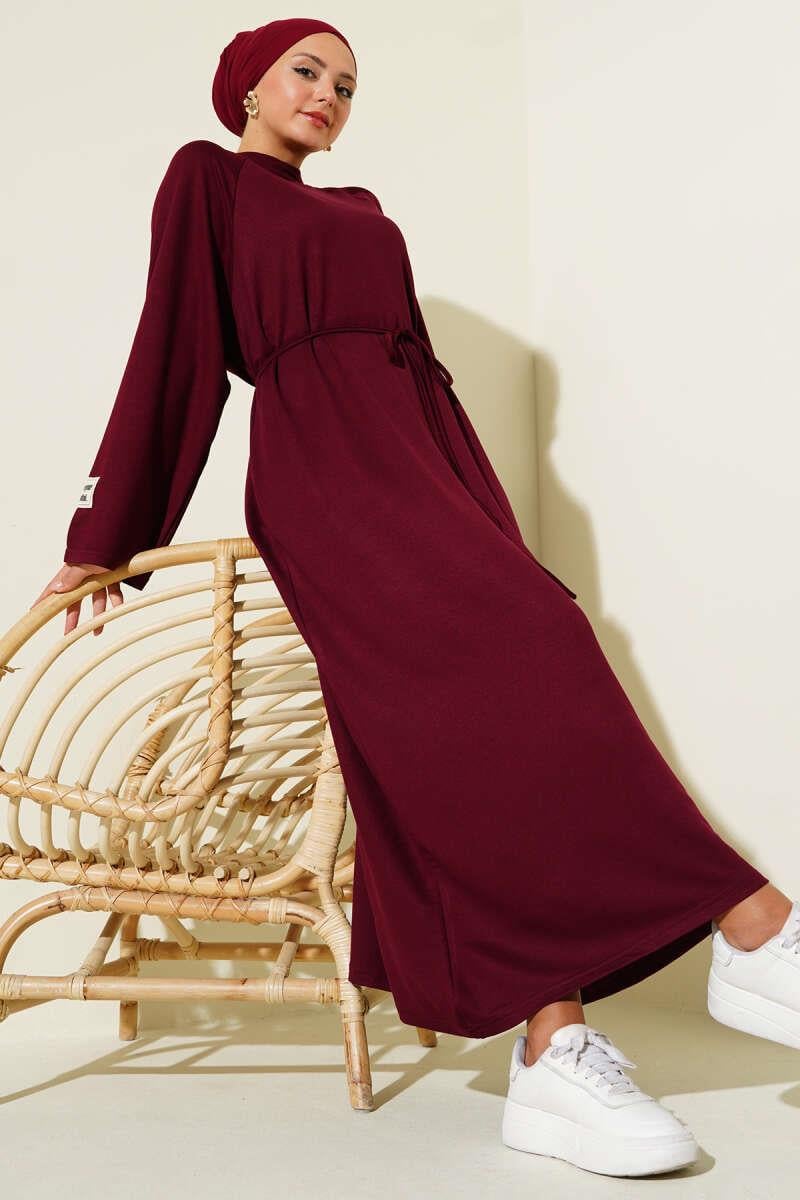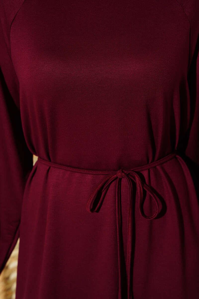 Loyşa Kol Armalı İp Kuşaklı Elbise Bordo (0582-13078-669847)