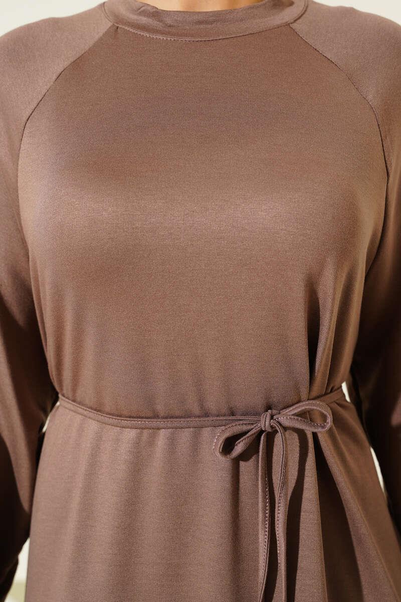 Loyşa Kol Armalı İp Kuşaklı Elbise Vizon (0582-13078-669855)