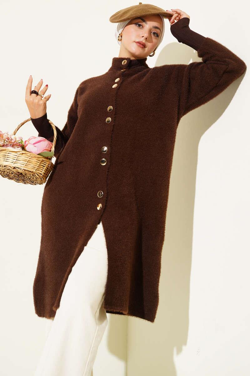 Metal Düğmeli Sakallı Hırka Kahve (6999-3265-676689)