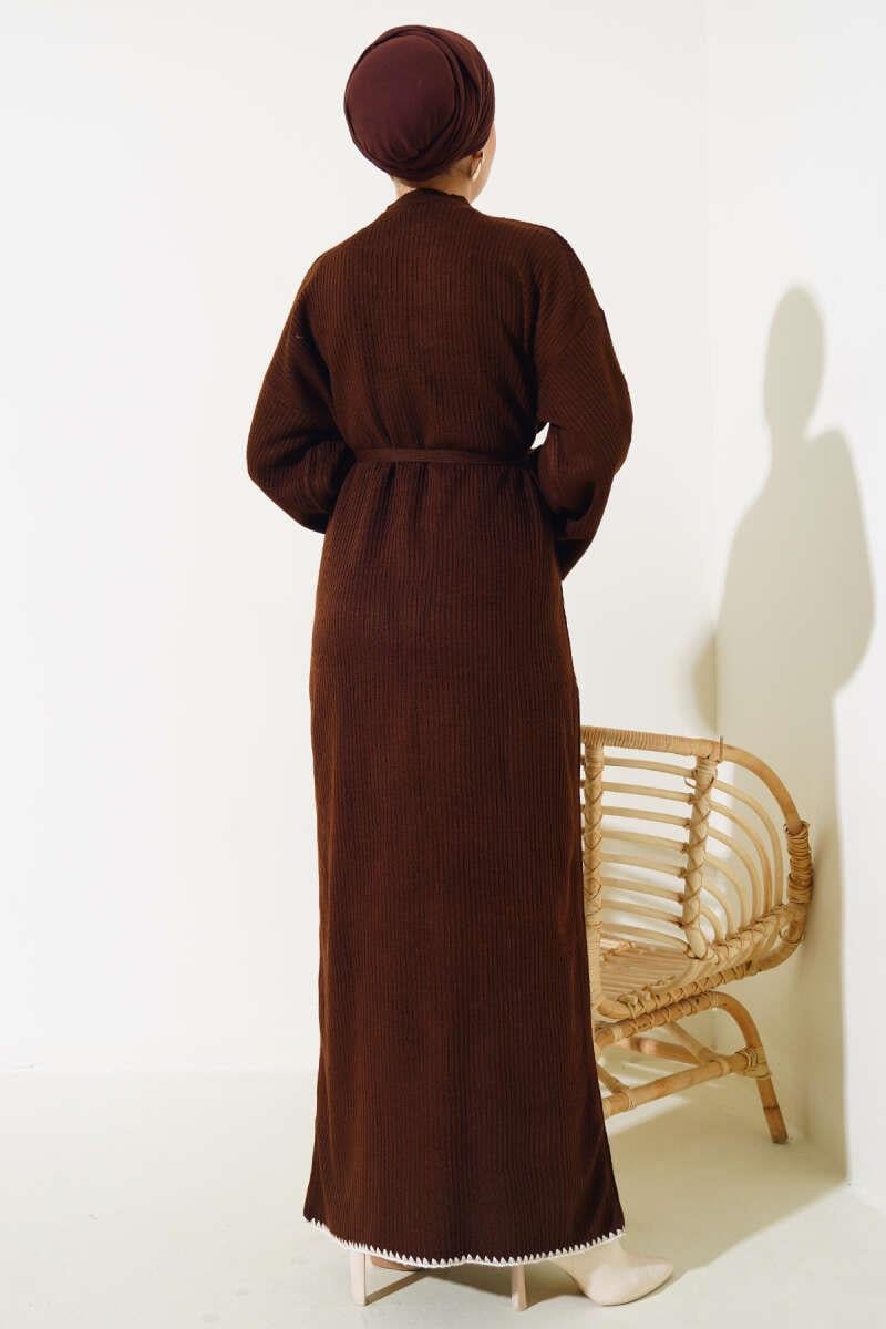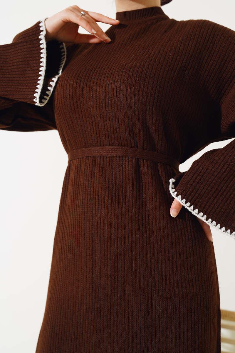 Midye Dikişli Triko Elbise Kahve (0589-3013-677627)